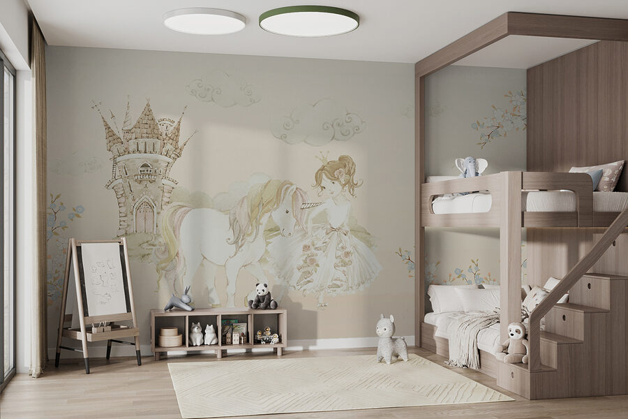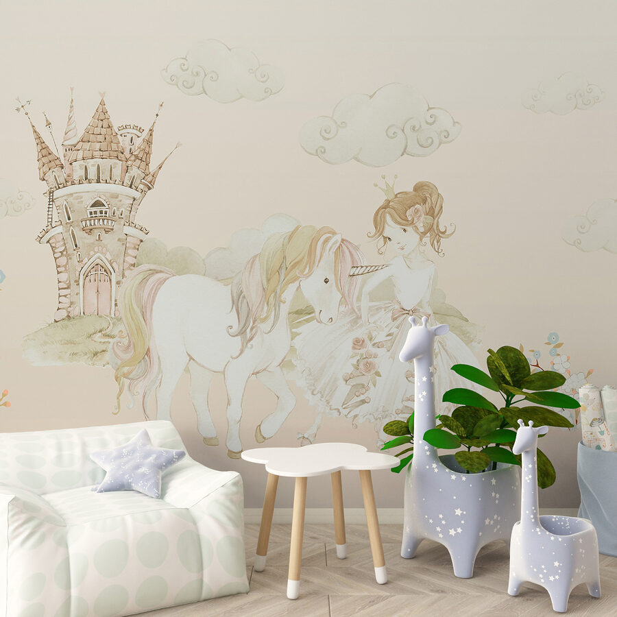 Imaginați-vă un perete care vă transportă direct într-un basm capricios – un castel în depărtare, o prințesă cu unicornul ei loial alături de ea. Această pictură murală este ca și cum ai păși într-o poveste de vis de fiecare dată când intri în cameră. Pastelurile moi și detaliile delicate sunt pur și simplu… magice. Perfect pentru camera unui copil sau pentru oricine iubește un pic de încântare în viața sa. În plus, norii pufoși și florile dulci? Acestea vor face ca fiecare zi să se simtă ca o zi însorită într-un tărâm de basm. Vorbim despre o piesă care stârnește imaginația și zâmbete instantanee!