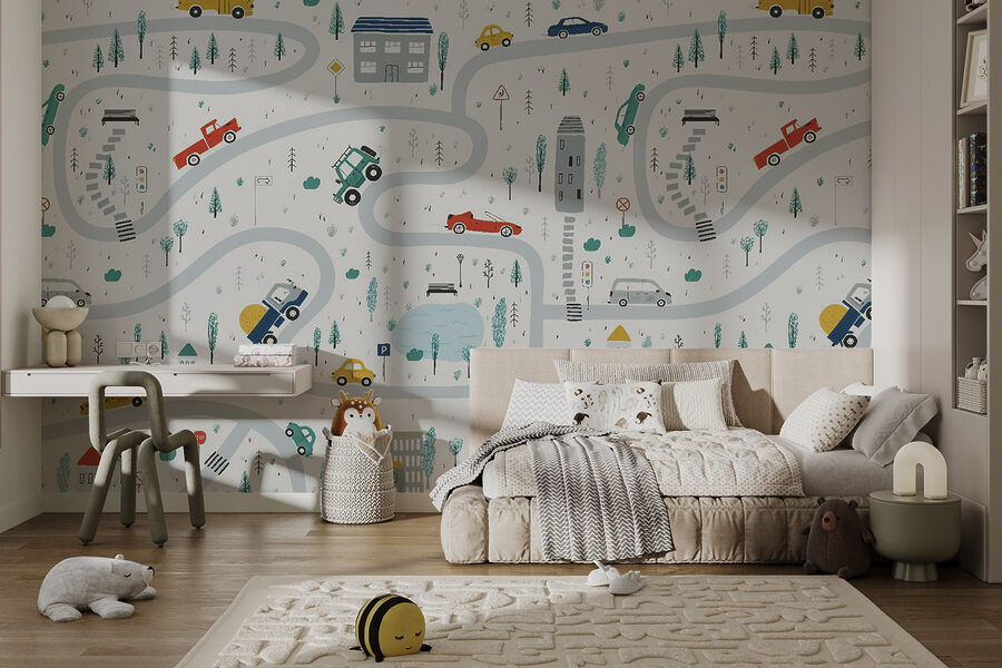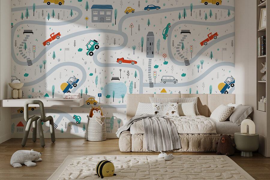 Aveți un copil care iubește mașinile și clădirile? Această “Hartă murală de mașini și clădiri” este un vis total! Imaginați-vă – drumuri vibrante care șerpuiesc pe tot peretele, mașini colorate care se învârt și clădiri mici și fermecătoare care punctează scena. Este ca și cum ai trăi într-un mini peisaj urban! Această pictură murală luminează camera oricărui copil, transformând pereții simpli în aventuri jucăușe. Perfect pentru a spune povești sau pentru a stârni imaginația unui micuț – gândiți-vă doar la poveștile de culcare care se vor desfășura! În plus, culorile moi și desenele capricioase fac ca spațiul să se simtă confortabil și distractiv. Nu este doar o pictură murală; este o invitație la explorare, visare și joacă în fiecare zi.