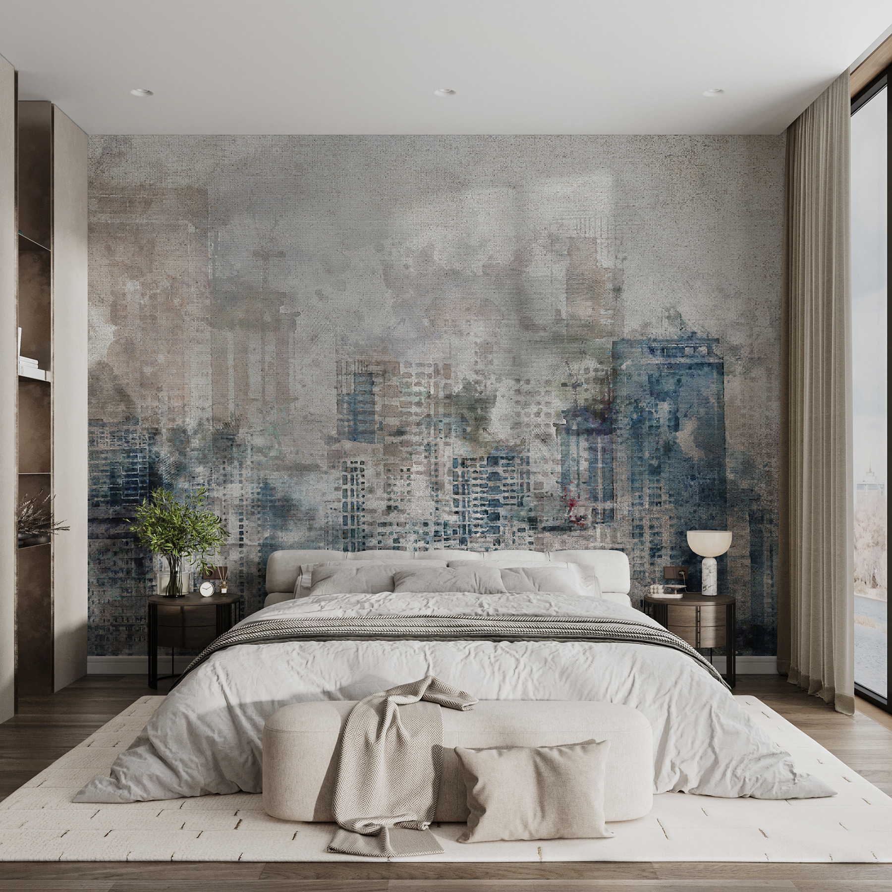 Imaginați-vă că intrați într-o cameră care simte pulsul unui oraș – această pictură murală transformă orice spațiu într-un peisaj urban de vis. Îmbină culorile blânde cu formele abstracte, creând un fundal care este atât energizant, cât și calmant. Perfectă pentru camera unui adolescent sau pentru un refugiu al unei tinere femei, aceasta stârnește genul de visare cu ochii deschiși care vă poartă pe străzi pline de viață sau pe acoperișuri liniștite. Imaginează-ți o discuție nocturnă sub strălucirea luminițelor de basm, pe fundalul acestei picturi murale. Acesta aduce o notă de magie urbană, un ușor memento că aventura vă așteaptă chiar în fața ușii. Lăsați vibrația orașului să inspire zâmbete și povești, fie că este o duminică leneșă sau o dimineață de școală aglomerată!