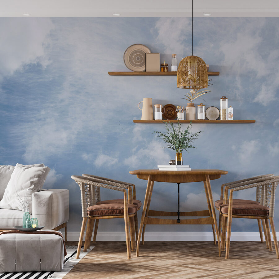 Imaginați-vă că vă începeți ziua cu un cer nesfârșit chiar pe perete! Peretele mural “Păsări zburând pe cer” face acest lucru posibil – este ca și cum ai avea o fereastră spre un cer de vis, fără limite, plin de nori pufoși și un strop de aventură. Perfect pentru orice cameră în care aveți nevoie de un pic mai mult spațiu de respirație și liniște. Este ceva în legătură cu aceste păsări care se înalță care strigă libertate… Este ca și cum te-ar invita să iei o pauză, să privești în sus și să-ți lași imaginația să zboare. Tonurile blânde ale acestei picturi murale, vibrațiile aerisite și sentimentul general de mișcare o fac câștigătoare pentru crearea unui mediu luminos și senin. Ideală pentru sufragerii, dormitoare sau chiar un spațiu de birou creativ – detoxifiați-vă puțin de la ecran și plutiți în derivă. În plus, copiilor le-ar putea face plăcere să inventeze povești despre călătoriile păsărelelor! Este o felie de cer, chiar în casa ta – cât de tare este asta? Propria ta zi personală de vreme bună perpetuă.