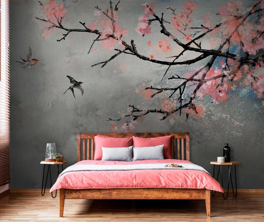 Este ca și cum ai avea o zi de primăvară perpetuă pe perete, cu aceste flori roz delicate și ramuri grațioase. Imaginați-vă sorbind ceai, simțindu-vă inspirați și aproape auzind fluturarea ușoară a aripilor. Este perfect pentru un colț de lectură sau un colț zen. În plus, are acea atingere magică – o piesă de artă care se simte vie și aduce un zâmbet de fiecare dată când este văzută. Fie că vă doriți calm sau creativitate, această pictură murală este biletul dvs. către o evadare frumoasă.