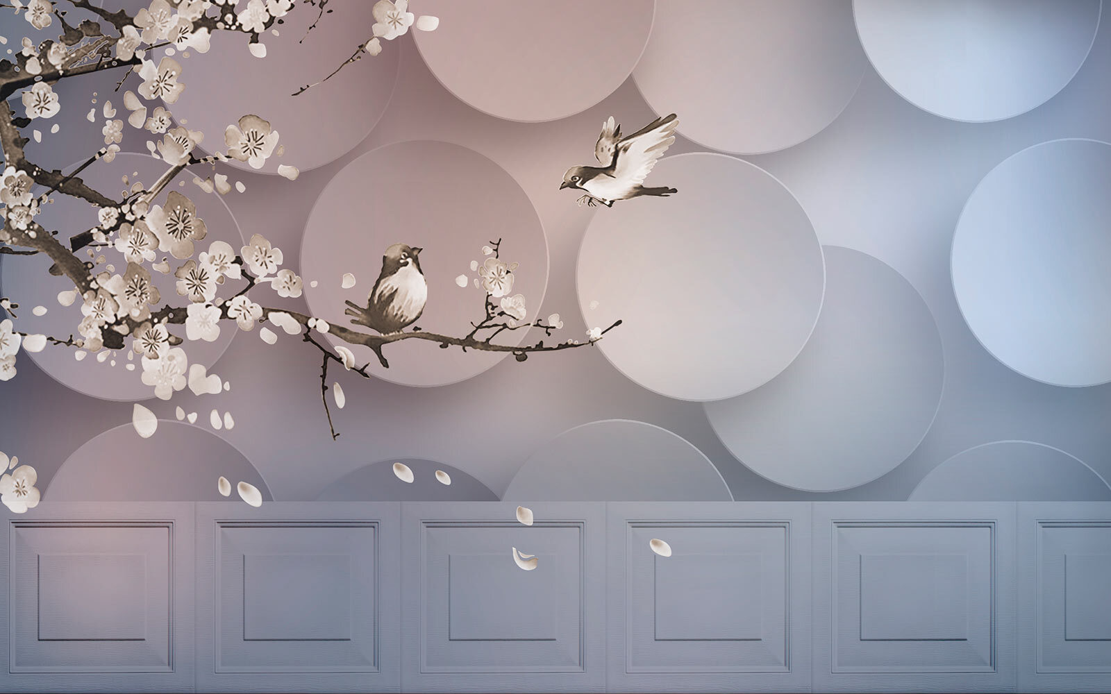 Aduceți un strop de natură în interiorul casei cu acest tapet uimitor, care prezintă păsări delicate așezate pe o ramură, înconjurate de cercuri albe jucăușe. Este ca și cum ați avea o grădină secretă chiar în sufrageria dvs.! Imaginați-vă ciripitul blând al păsărilor în timp ce savurați cafeaua – simțiți acea liniște? Nuantele calde se armonizează cu diverse stiluri de decor, adăugând dimensiune fără a copleși spațiul. Perfect pentru a crea un colț confortabil sau un punct focal elegant, oaspeții vor exclama: „Ce atmosferă minunată aveți aici!” Cine ar fi crezut că decorul poate fi atât de înălțător?