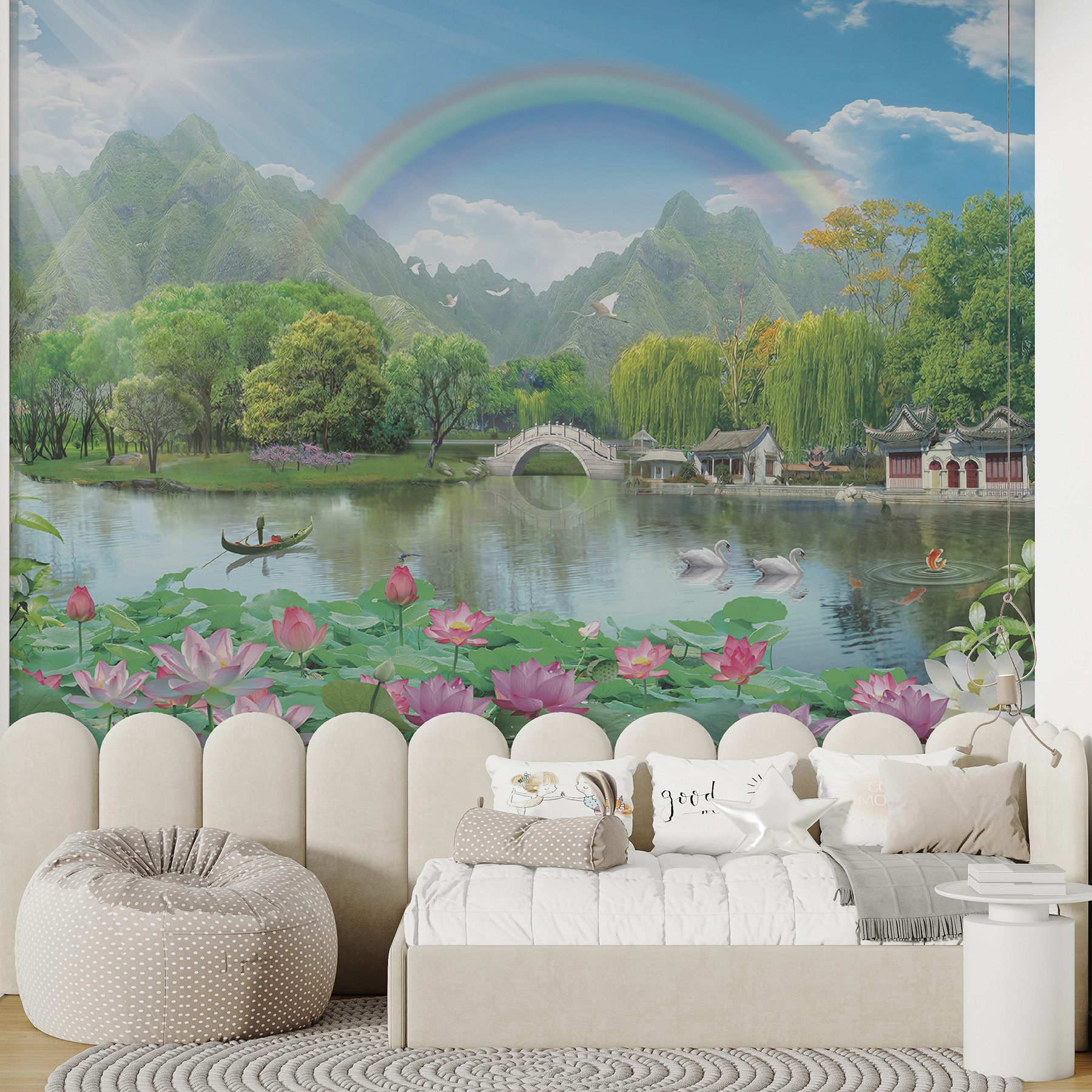 Imaginați-vă că intrați într-o cameră și sunteți transportați într-un paradis liniștit de pe malul lacului… Îl puteți simți? Este exact ceea ce face această pictură murală. “Peisaj senin cu flori de lotus” este ca un suspin ușor pentru sufletul tău – calmant și liniștit. Perfect pentru grădinițe sau orice spațiu care are nevoie de o notă de liniște. Imaginați-vă că vă relaxați după o zi agitată, bucurându-vă de strălucirea blândă a soarelui la apus, cu aerul plin de parfumul dulce al florilor de lotus… Vă veți simți ca și cum ați fi în vacanță în fiecare zi! În plus, este un început de conversație minunat pentru invitați (sau un fundal perfect pentru Instagram). Fie că decorați camera unui copil sau adăugați o notă de natură spațiului dvs. de locuit, această pictură murală vă va face cu siguranță să zâmbiți de fiecare dată când o veți vedea.