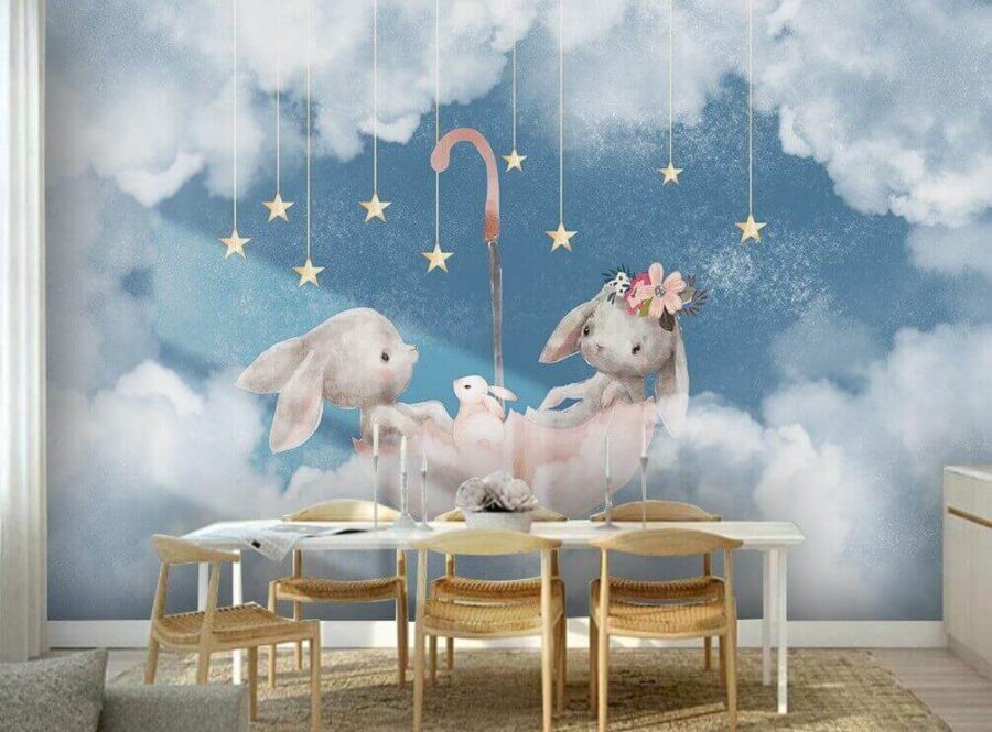 Transformați-vă spațiul cu farmecul încântător al „Two Rabbits in a Pink Umbrella” (Doi iepurași sub o umbrelă roz). Acest mural fermecător aduce un plus de veselie și fantezie în orice cameră, prezentând iepurași adorabili care plutesc printre nori de vis, legați de o umbrelă roz strălucitoare. Este ca o îmbrățișare blândă pentru pereții dvs., perfectă pentru a înveseli camera copiilor, camera de joacă sau chiar colțul confortabil de lectură. Imaginați-vă că savurați un ceai cu acest mural ca fundal – cine nu ar zâmbi? Este ca o mică bucată de magie care stârnește bucurie. Culorile delicate și detaliile dulci invită la visare și râsete, făcând din fiecare privire o mini-evadare.