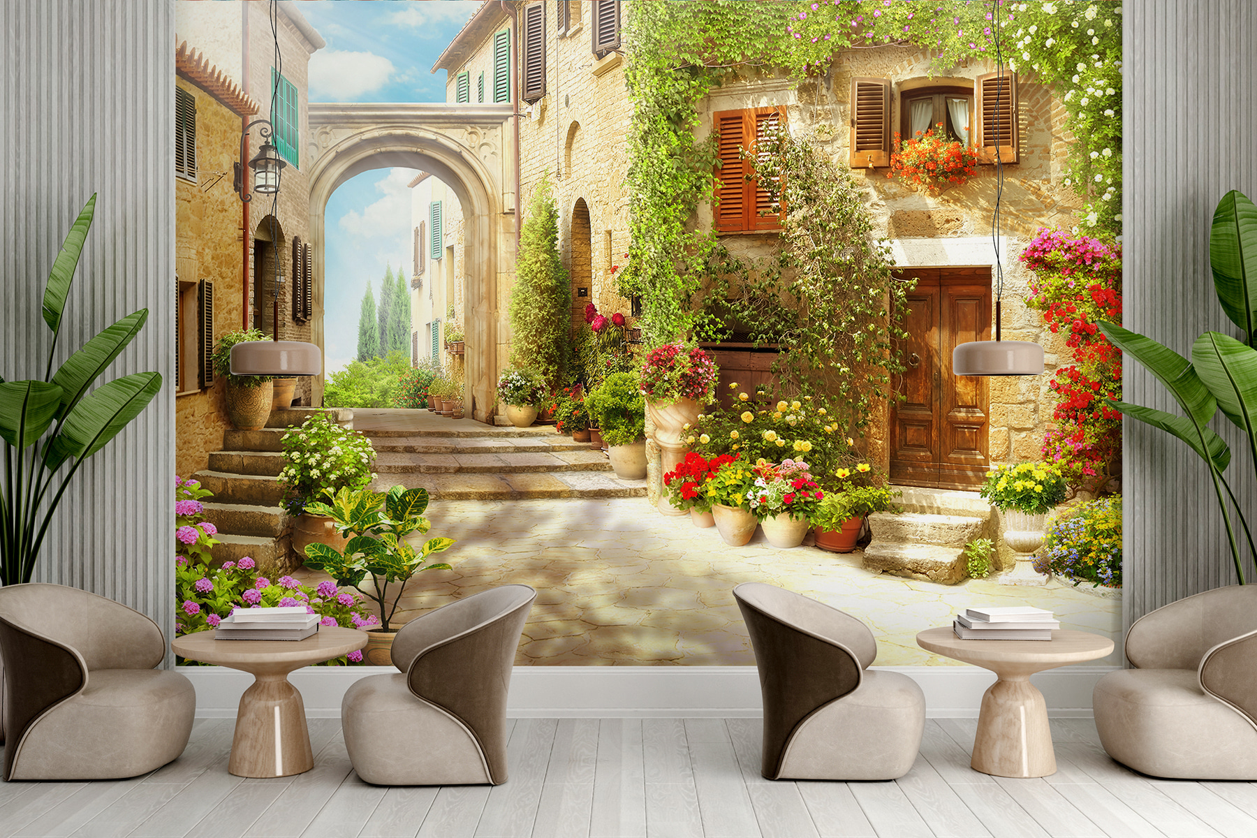 Transformați orice cameră într-o escapadă fermecătoare cu această pictură murală încântătoare – o stradă vibrantă plină de flori. Imaginați-vă asta: alei însorite flancate de flori colorate și arhitectură rustică. Este ca și cum ai păși într-o scenă de poveste în care fiecare privire aduce o nouă descoperire. Nuanțele blânde și detaliile pline de viață pot înveseli un spațiu plictisitor, făcându-l să pară proaspăt și primitor. Prietenii s-ar putea să te întrebe dacă l-ai găsit într-o călătorie în Italia! Fie că este vorba de un colțișor confortabil sau de un living plin de viață, această pictură murală adaugă atingerea perfectă de căldură și veselie – ideală pentru acele zile în care este nevoie de o mică evadare.