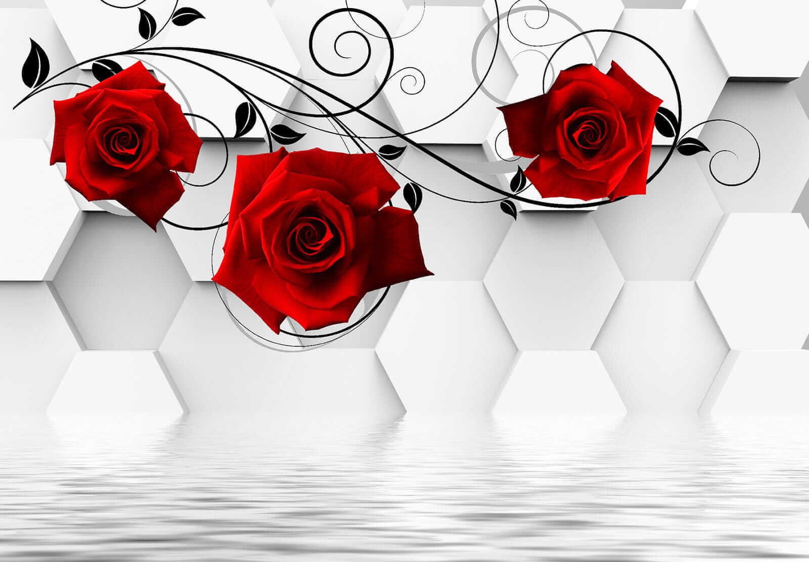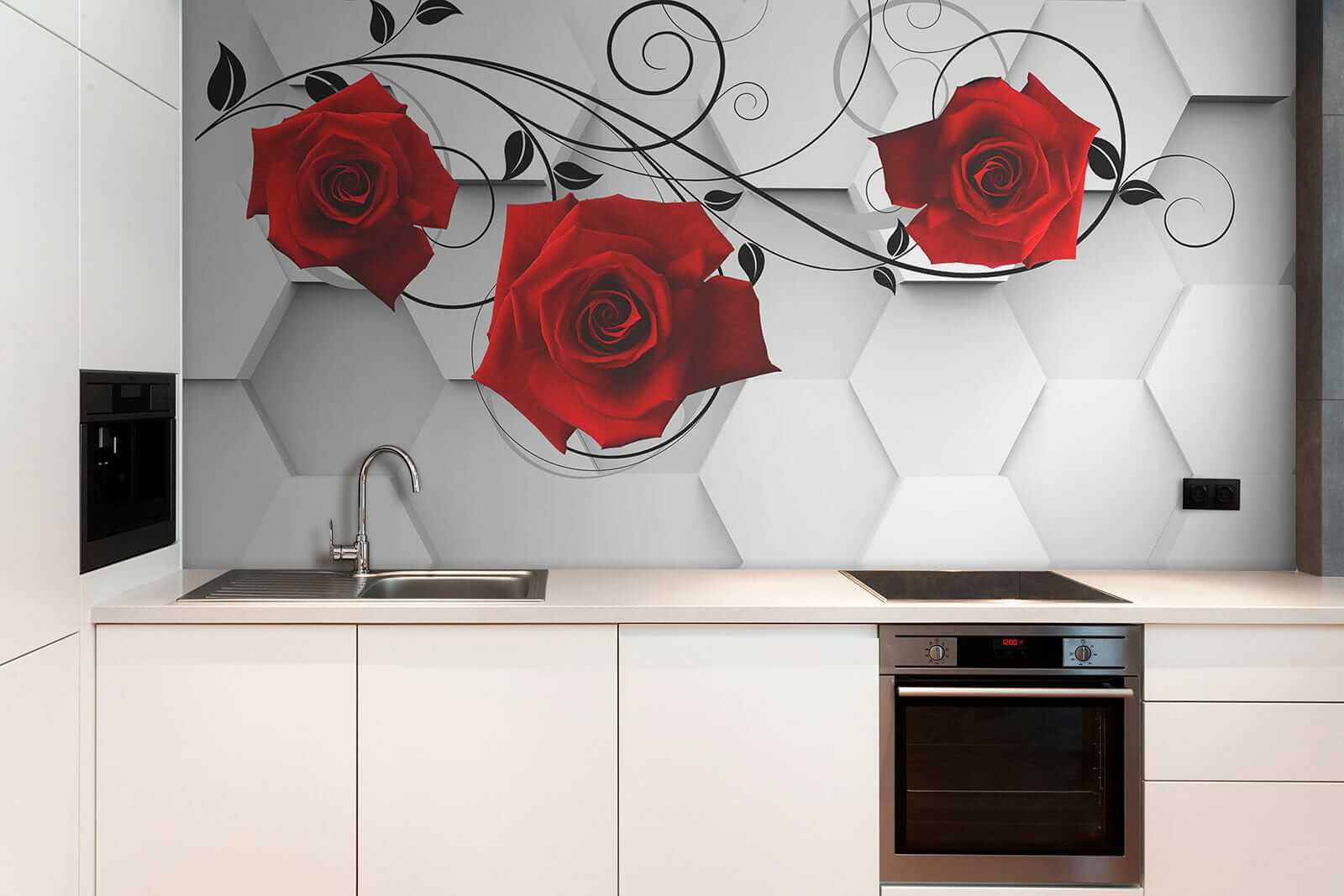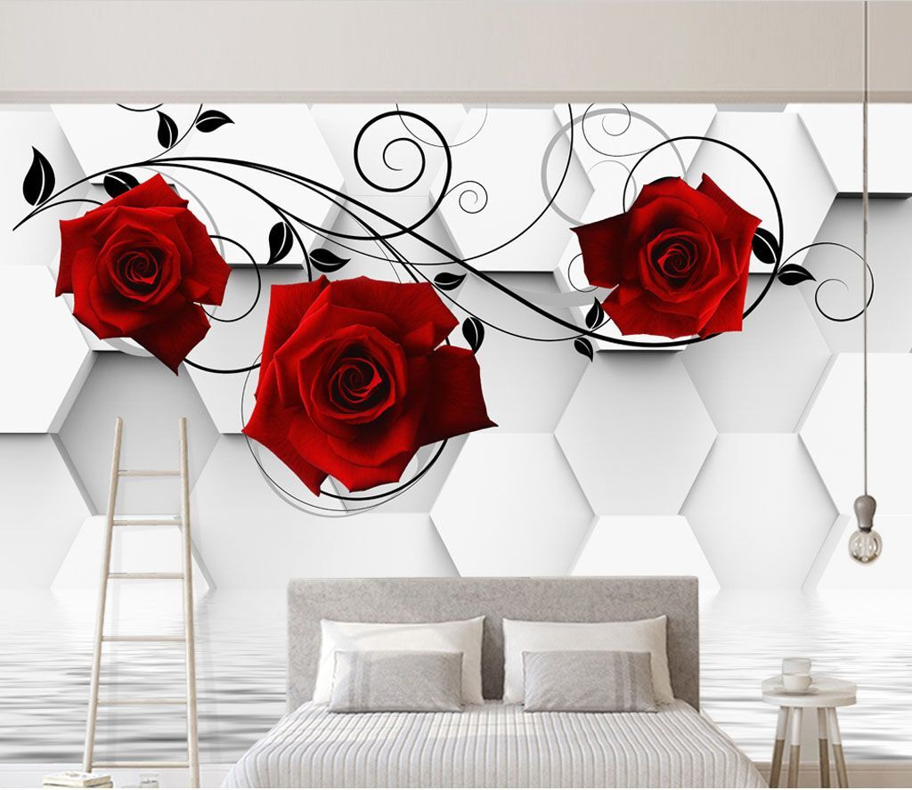 Transformați-vă spațiul cu acest tapet uimitor, cu trandafiri roșii vibranți împletiti grațios cu viță de vie neagră elegantă. Este ca și cum ați avea o grădină înflorită chiar în sufrageria dvs., fără stropitoarea și zumzetul ocazional al albinelor. Fundalul cu hexagoane elegante conferă un aspect modern, în timp ce trandafirii adaugă o notă de romantism, perfectă pentru a crea o atmosferă confortabilă. Fie că este vorba de o cafea leneșă în dimineața de weekend sau de o cină animată, acest tapet creează atmosfera potrivită. Este genul de decor care stârnește conversații și poate câteva visuri cu ochii deschiși despre grădini secrete. Cine nu s-ar simți puțin mai inspirat privind aceste frumuseți?