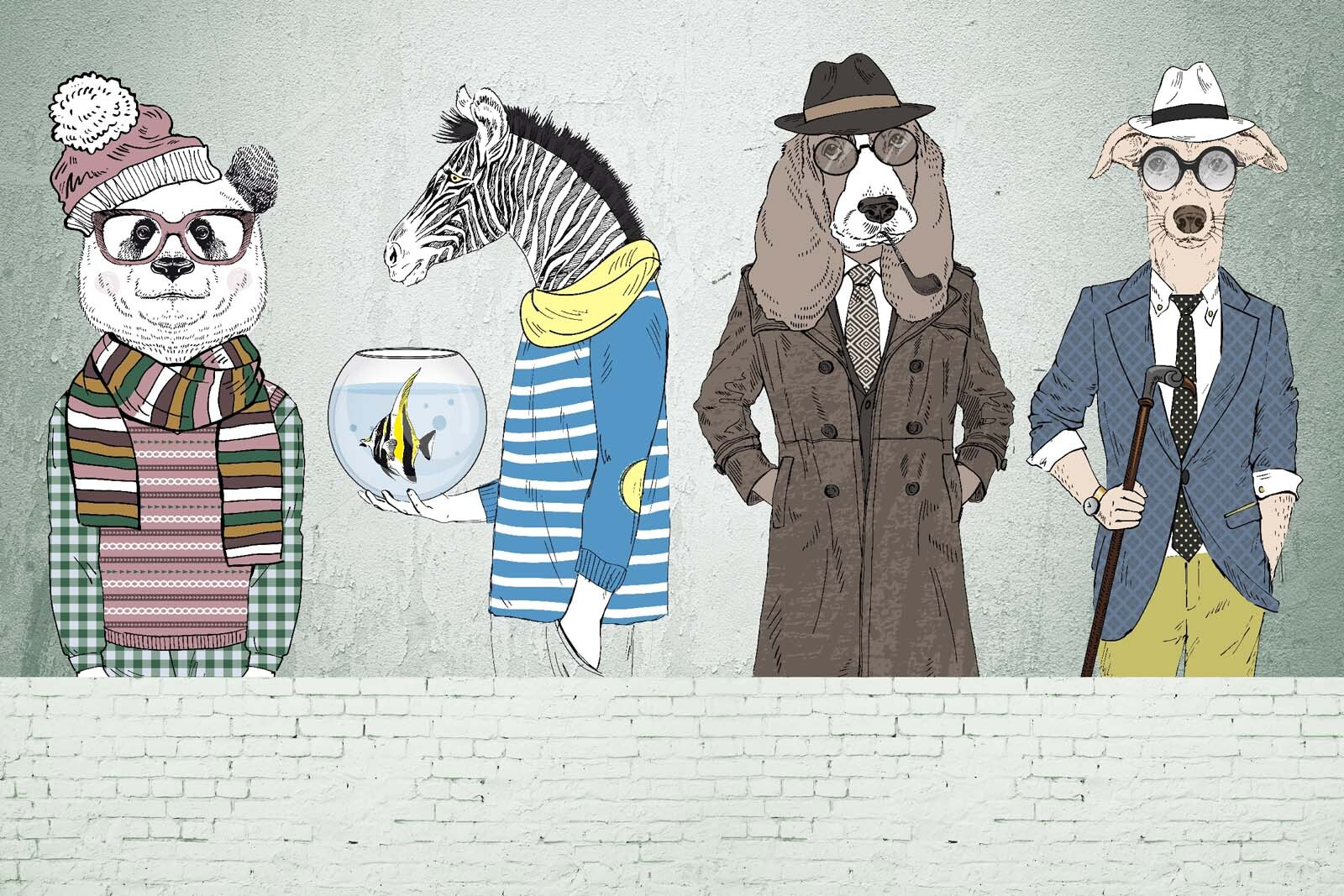 Aduceți o atmosferă jucăușă pe pereții dvs. cu „Fototapetul cu capete de animale”. Imaginați-vă un panda cu ochelari eleganți, o zebră cu dungi și un câine elegant într-un trench – toți împreună, ca și cum ar fi gata pentru o seară în oraș! Farmecul ciudat al acestui fototapet poate transforma o cameră plictisitoare într-un refugiu capricios. Imaginează-ți că bei o cafea în timp ce arunci o privire la prietenul tău zebră; poți rezista să nu zâmbești? Perfect pentru camera unui copil, o cafenea funky sau pur și simplu orice loc care are nevoie de un strop de bucurie, acest mural va stârni cu siguranță conversații și poate chiar și câteva râsete! Înveselește-ți spațiul cu o notă de distracție!