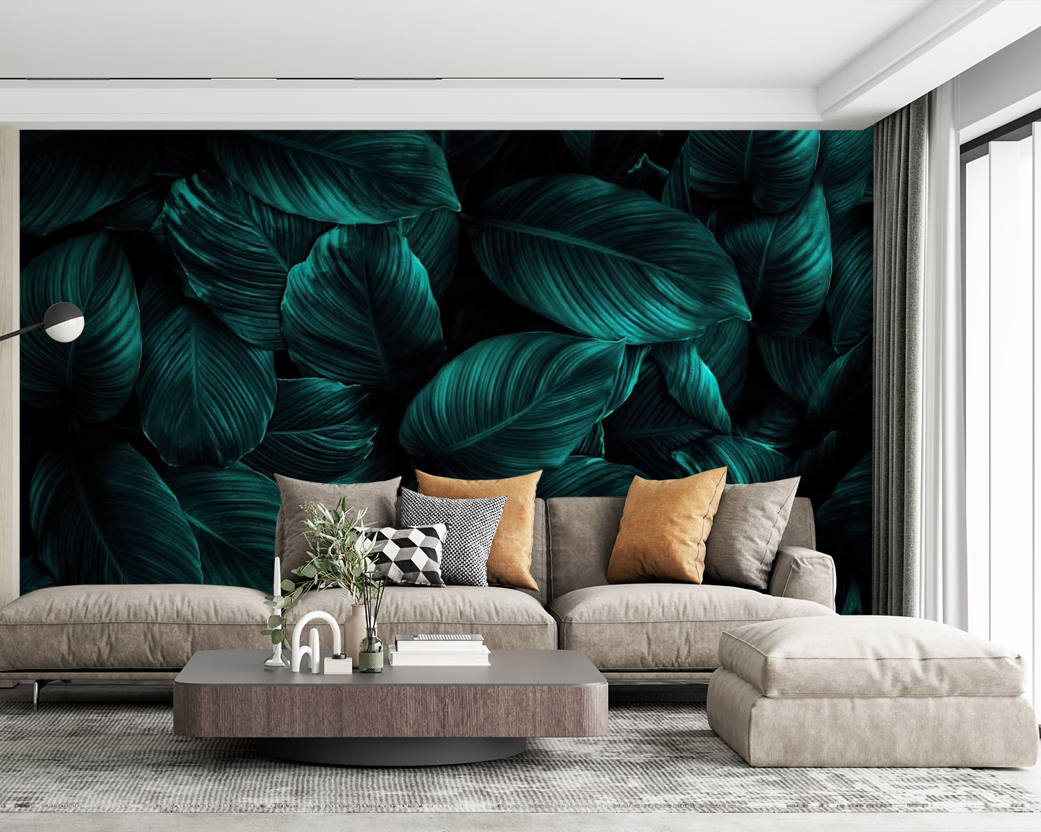 Transformați-vă spațiul cu această murală uimitoare care prezintă un grup luxuriant de frunze verde închis. Imaginați-vă că pășiți într-o pădure senină în fiecare zi, chiar dacă colțișorul dvs. confortabil este la doar câteva străzi distanță de agitația vieții de oraș. Verdele intens creează o atmosferă liniștitoare, perfectă pentru relaxare după o zi lungă sau pentru stimularea creativității în timp ce lucrați de acasă. În plus, este o modalitate ușoară de a adăuga viață oricărei camere. Prietenii vor crede că ai devenit un maestru al plantelor și, cine știe, poate că vei deveni. Pregătiți-vă pentru senzația de junglă interioară, fără întreținere!