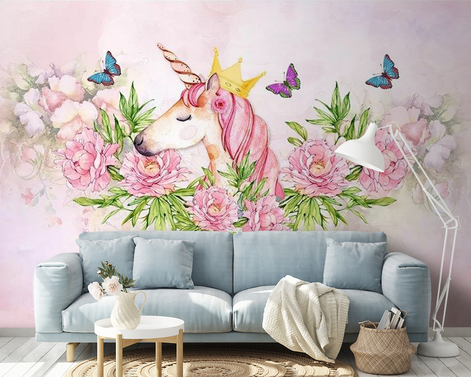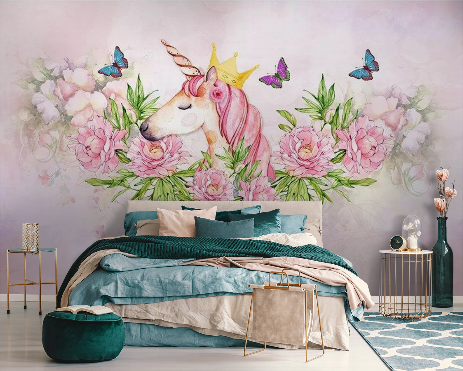 Transformați spațiul unui copil într-un regat magic cu această pictură murală încântătoare cu un unicorn încoronat și înconjurat de fluturi. Imaginați-vă încântarea din ochii fiicei dvs. când intră în camera ei și este întâmpinată de această scenă capricioasă. Este ca și cum un basm ar prinde viață chiar pe pereți! Culorile suave și designul fermecător creează o atmosferă senină, dar vibrantă. Imaginați-vă momente confortabile de poveste sau întâlniri de joacă în care imaginația poate zbura – nu este nevoie de pantofi strălucitori când acest mural aduce toată magia! Perfect pentru orice mic visător.