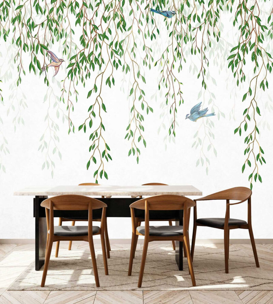 Imaginați-vă că vă treziți în fiecare dimineață la vederea liniștitoare a păsărilor cocoțate pe ramuri delicate, scăldate în nuanțele blânde ale acuarelei. Această pictură murală “Pasăre așezată pe o creangă” nu este doar o decorare obișnuită – este ca o mini-excursie către un paradis liniștit, cu frunze, chiar în casa dvs. Perfect pentru iubitorii de natură sau pentru oricine are nevoie de un loc calm în mijlocul agitației vieții. Ideală pentru un dormitor, un living sau chiar un colțișor de lectură confortabil… unde o ceașcă de ceai și o carte bună par aproape necesare! Verzii și maronii blânzi trec frumos cu lumina, creând un flux senin și continuu pe perete. Instalarea? O briză! Aproape ca și cum ți-ai picta propria poveste… Dacă pereții ar putea vorbi, ei ar șopti pace cu această pictură murală.