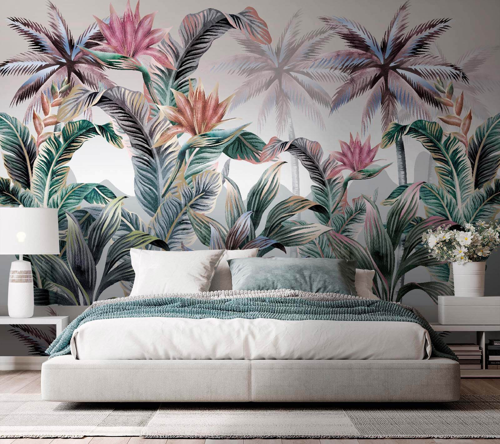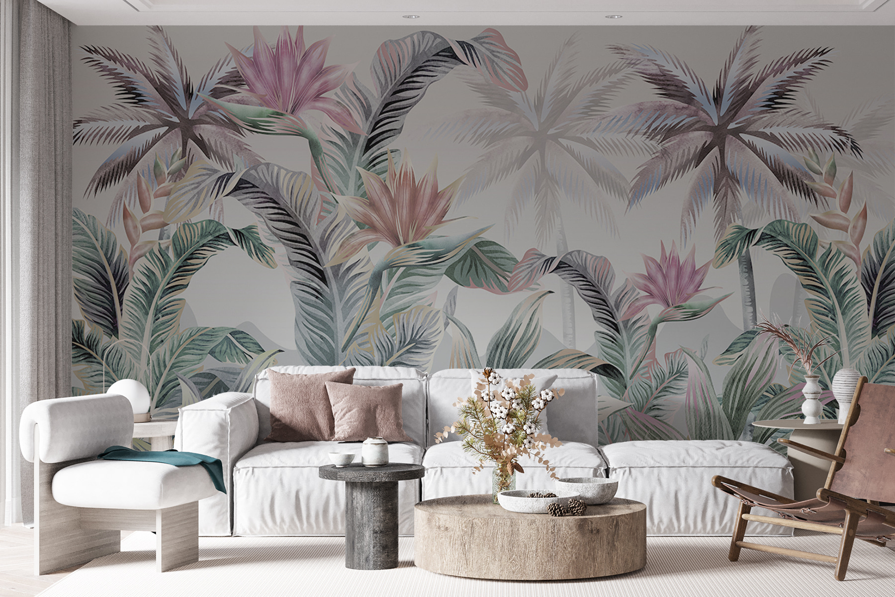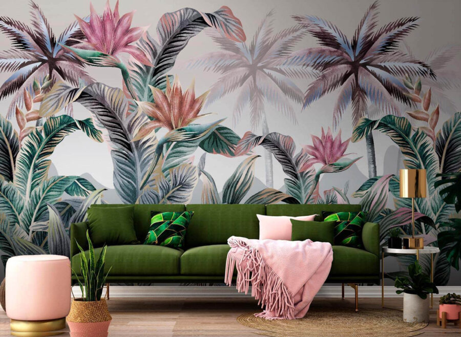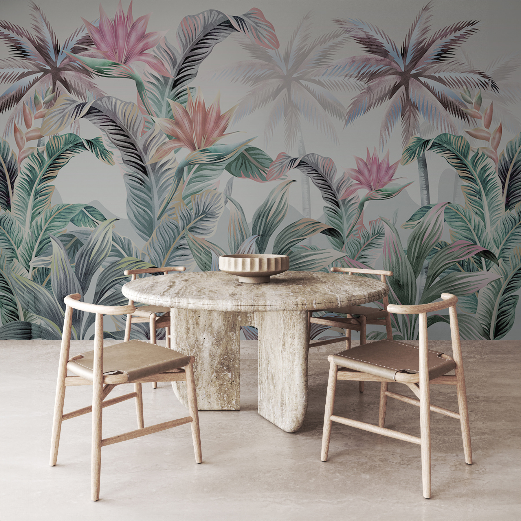 Imaginați-vă acest lucru – camera dvs. de zi tocmai a fost transportată într-o escapadă tropicală luxuriantă cu această pictură murală “Tropical Paradise”. Este ca și cum ai păși într-un vis în care frunzele vibrante și frunzișul exotic dansează în jurul tău. Verdele, rozul și albastrul se întrepătrund în această capodoperă în acuarelă, aducând magia naturii chiar în interior. Fie că sorbiți cafeaua de dimineață sau un cocktail de seară poate obraznic, veți simți șoapta senină a unei brize de junglă. Perfect pentru a transforma un perete simplu într-o piesă plină de viață – pur și simplu, spațiul dvs. explodează de viață și culoare. Cine are nevoie de bilete de avion când are paradisul în casa sa?