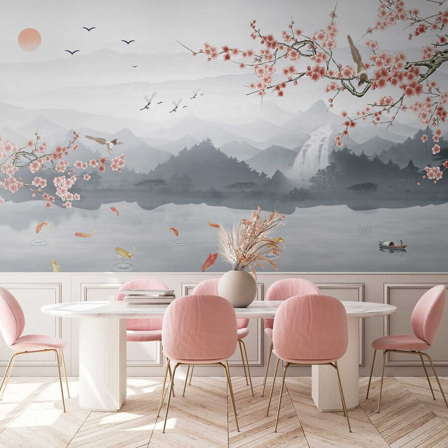 Imaginați-vă că vă treziți în fața acestei picturi murale uimitoare! “Cerc roz pe alb” nu este doar un decor oarecare – este ca o gură de aer proaspăt chiar în camera ta. Flori roz ca floarea de zahăr, munți moi ca niște șoapte în fundal și o atmosferă senină de la malul mării… Această piesă aduce un strop din calmul naturii în ziua ta. Imaginați-vă cum vă relaxați cu această frumusețe care vă întâmpină – este ca o mini evadare de fiecare dată când treceți pe lângă ea. Perfectă pentru un colțișor de lectură sau pentru acel perete gol pe care l-ați contemplat. Este mai mult decât artă – este un moment de liniște prins în timp!