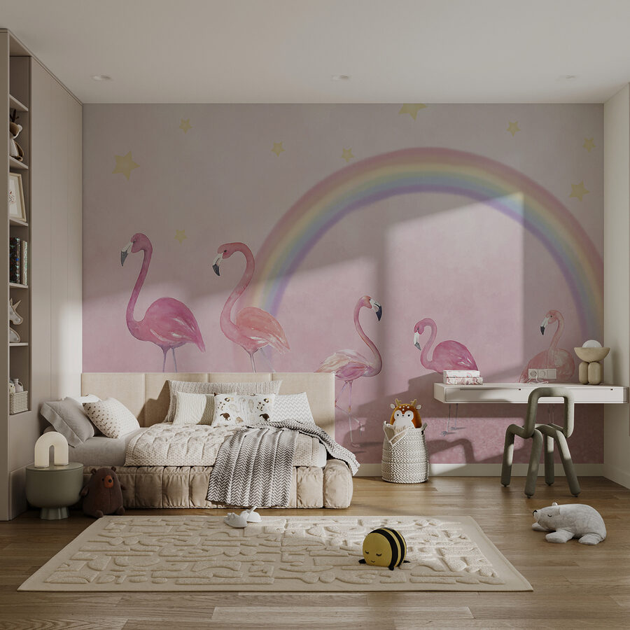 Simțiți că spațiul copilului dvs. are nevoie de un strop de ceva în plus? Faceți cunoștință cu pictura noastră murală “Flamingo roz pe un fundal roz”! Imaginați-vă că vă treziți la o paradă a acestor fabuloși prieteni cu pene – atât de vibranți pe cerul roz de vis. Este ca și cum ai păși în fiecare dimineață într-un basm. Steluțele și curcubeul nu fac decât să sporească fantezia, nu credeți? Perfect pentru a stârni imaginația! În plus, se află în categoriile picturi murale pentru copii și picturi murale populare – bănuiesc că nu degeaba este un hit! Presară un pic de magie pe pereți și privește cum întreaga cameră prinde viață!
