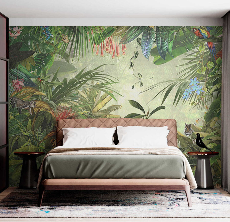 V-ați dorit vreodată ca spațiul dvs. de locuit să se simtă ca o aventură exotică? Acest perete mural “Lush Jungle” ar putea fi soluția potrivită. Imaginați-vă că vă treziți, vă luați cafeaua și priviți direct într-o pădure tropicală vibrantă, plină de viață – papagali, maimuțe, tigri… Aproape că ai putea auzi foșnetul frunzelor sau simți briza răcoroasă a junglei! Culorile sunt superb de profunde – verde luxuriant, tonuri bogate de pământ, stropi de flori. Perfecte pentru iubitorii de natură sau pentru oricine dorește să aibă acasă o notă de sălbăticie. Este ca o mică evadare, chiar pe peretele tău!🌿🦜