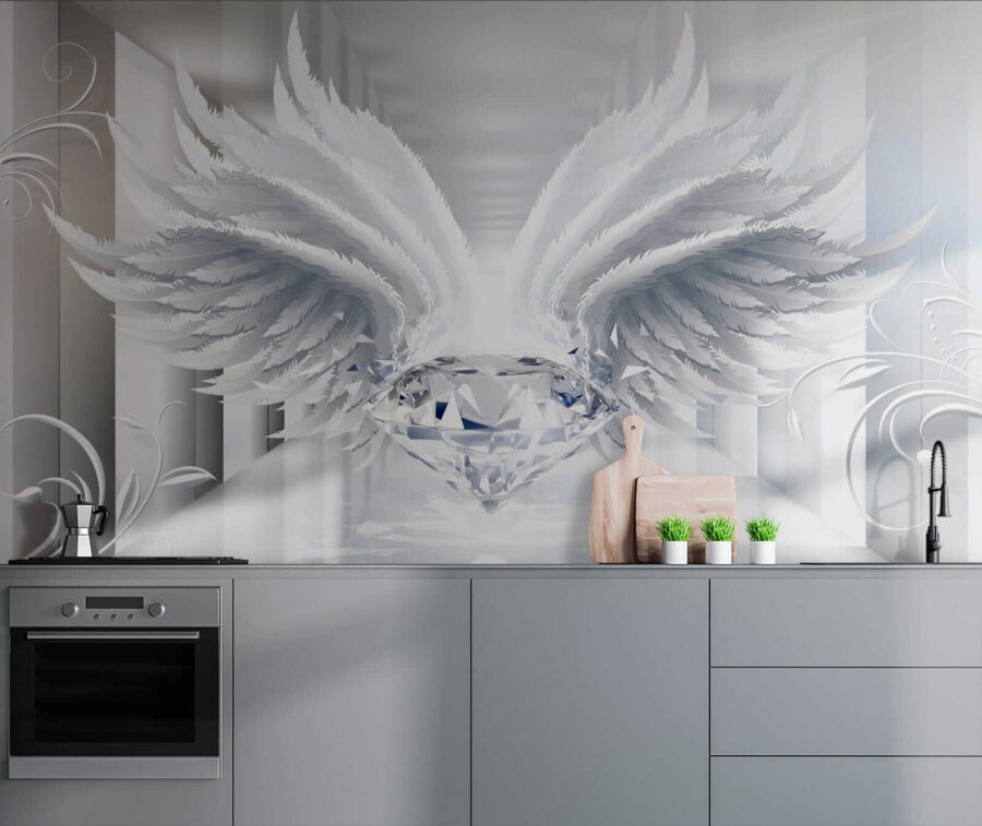 Transformați orice cameră într-o evadare de vis cu această pictură murală capricioasă care prezintă o pereche de aripi maiestuoase ce leagănă o piesă centrală radiantă. Este ca o îmbrățișare pentru pereții dvs. – pe bune! Designul delicat oferă un sentiment de lejeritate, făcând spațiile să se simtă aerisite și deschise. Imaginați-vă că vă treziți în fața acestei frumuseți senine sau că găzduiți o întâlnire confortabilă, unde oaspeții nu se pot abține să nu admire arta. Perfectă pentru a adăuga personalitate fără a copleși spațiul, această pictură murală invită la visare cu ochii deschiși și inspiră creativitatea. Perfectă pentru cei capricioși la suflet.