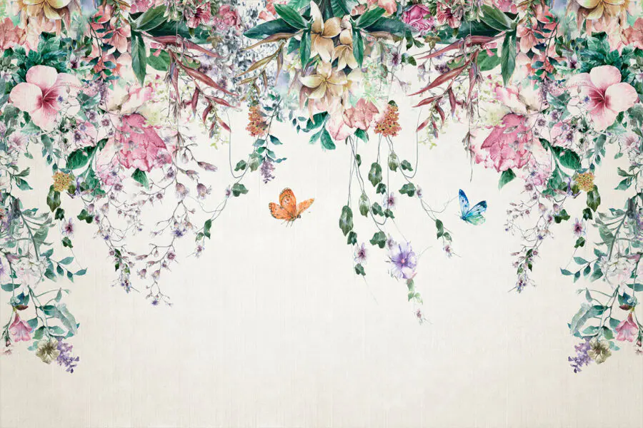 Transformați-vă spațiul într-o grădină de vis cu “Fototapet Butterflies flutter amidst blooming paradise.” Această pictură murală în acuarelă este ca și cum ai păși într-un basm – fluturi delicați și flori vibrante dansează pe pereții tăi. Imaginați-vă că intrați într-o cameră care vă ridică instantaneu moralul cu explozia sa de culoare și grație.