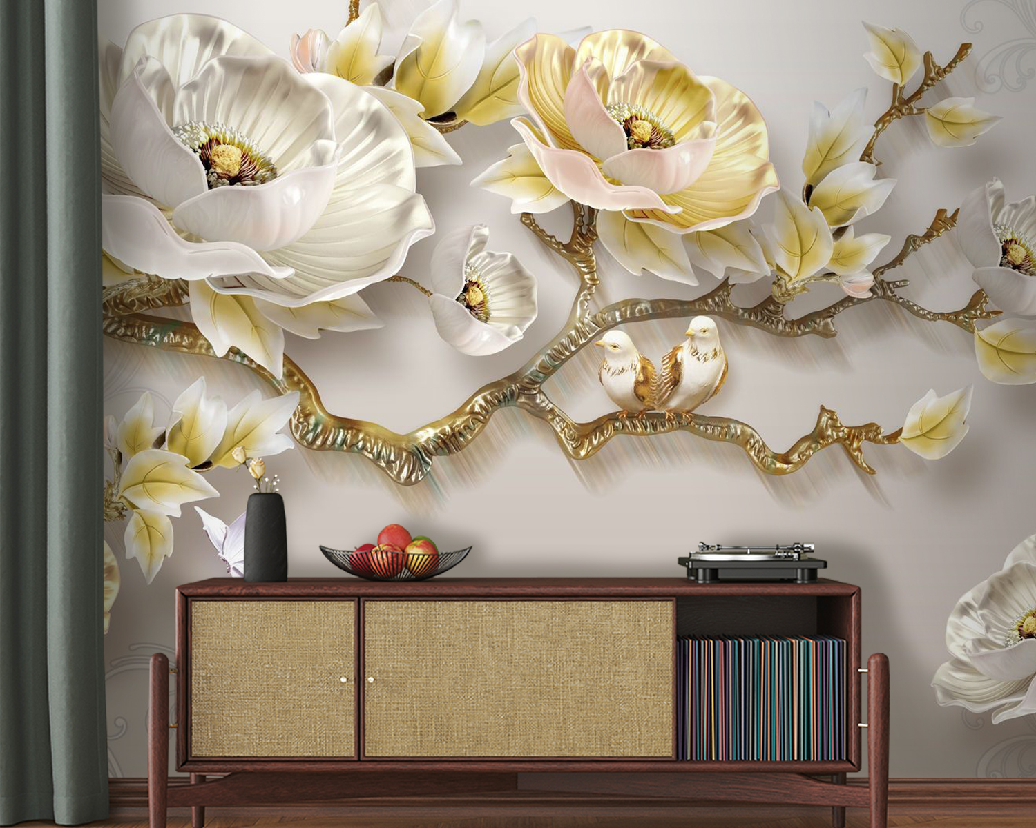 Transform any room into a tranquil haven with this stunning wall mural, featuring delicate flowers and charming birds. Imagine waking up to a garden scene right on your walls, where blooms seem to gently sway and birds chirp sweet nothings. It’s like having nature’s best-kept secret—on the inside! The soft colors evoke a peaceful vibe, perfect for daydreaming or hosting cozy afternoons with friends. Plus, there’s something about flowers that just makes everything feel brighter, doesn’t it? This mural isn’t just decor; it’s a whole mood, whispering warmth and joy into your home. Who wouldn’t want that?