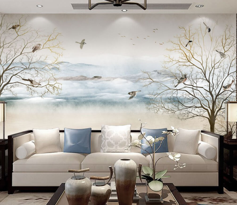 Imaginați-vă acest lucru: intrați în sufragerie și sunteți întâmpinați de o scenă senină de păsări cocoțate pașnic pe ramurile copacilor – aceasta este magia picturii murale “Pasăre pe o ramură de copac”. Este ca și cum ai păși într-o pădure liniștită chiar în casa ta! Culorile moi, atenuate și legănarea blândă a crengilor conferă întregului spațiu o vibrație liniștitoare. Ideală pentru zilele stresante – cine nu are nevoie de puțină liniște?