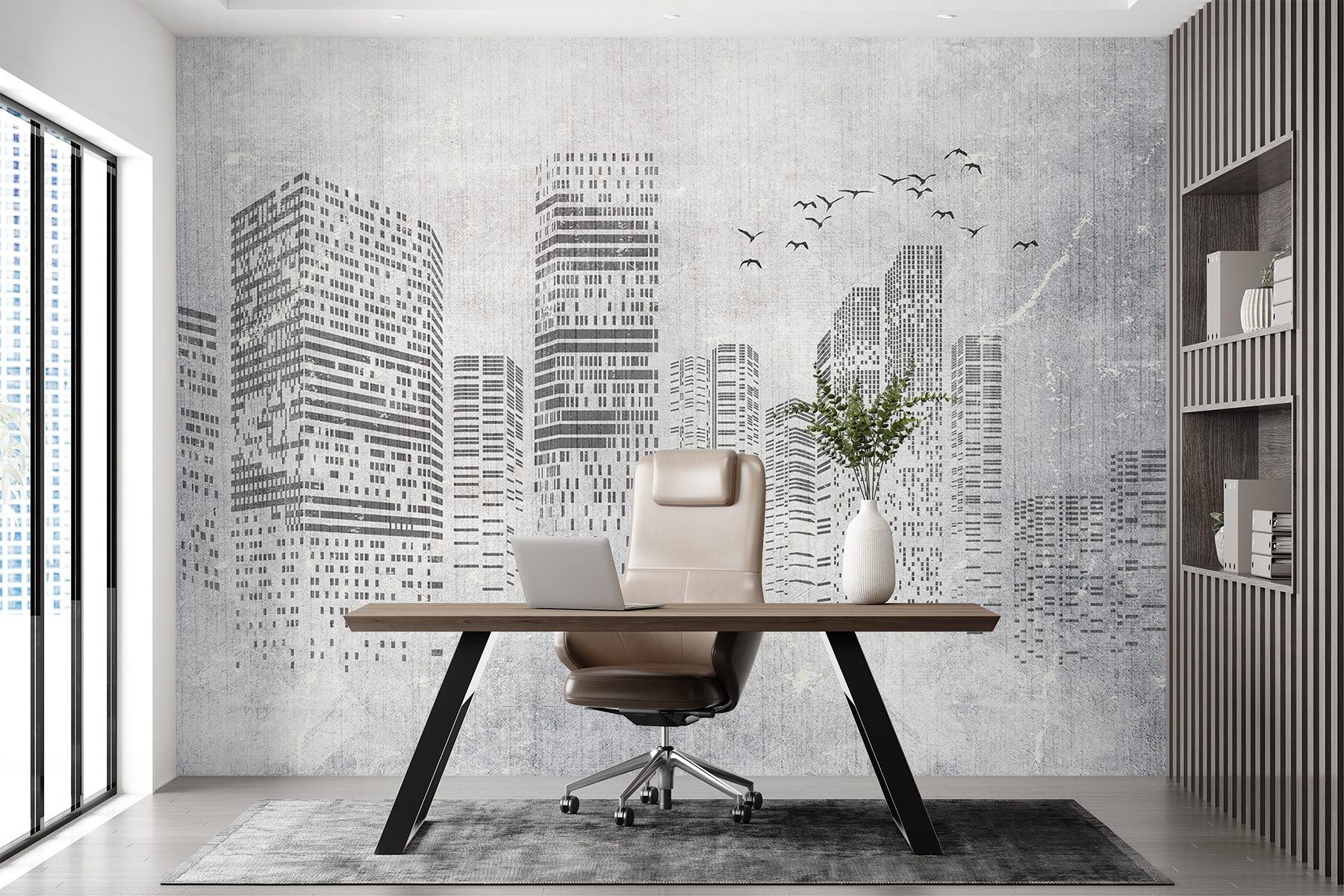Perfect pentru toți cei care iubesc estetica modernă și minimalistă, dar care doresc să aibă un pic de margine. În plus, norii moi și încețoșați adaugă o notă de relaxare peisajului urban, altfel plin de energie. Te face să te simți ca și cum te-ai uita dintr-o clădire înaltă într-o dimineață cețoasă, privind cum lumea prinde viață – destul de poetic, nu-i așa?