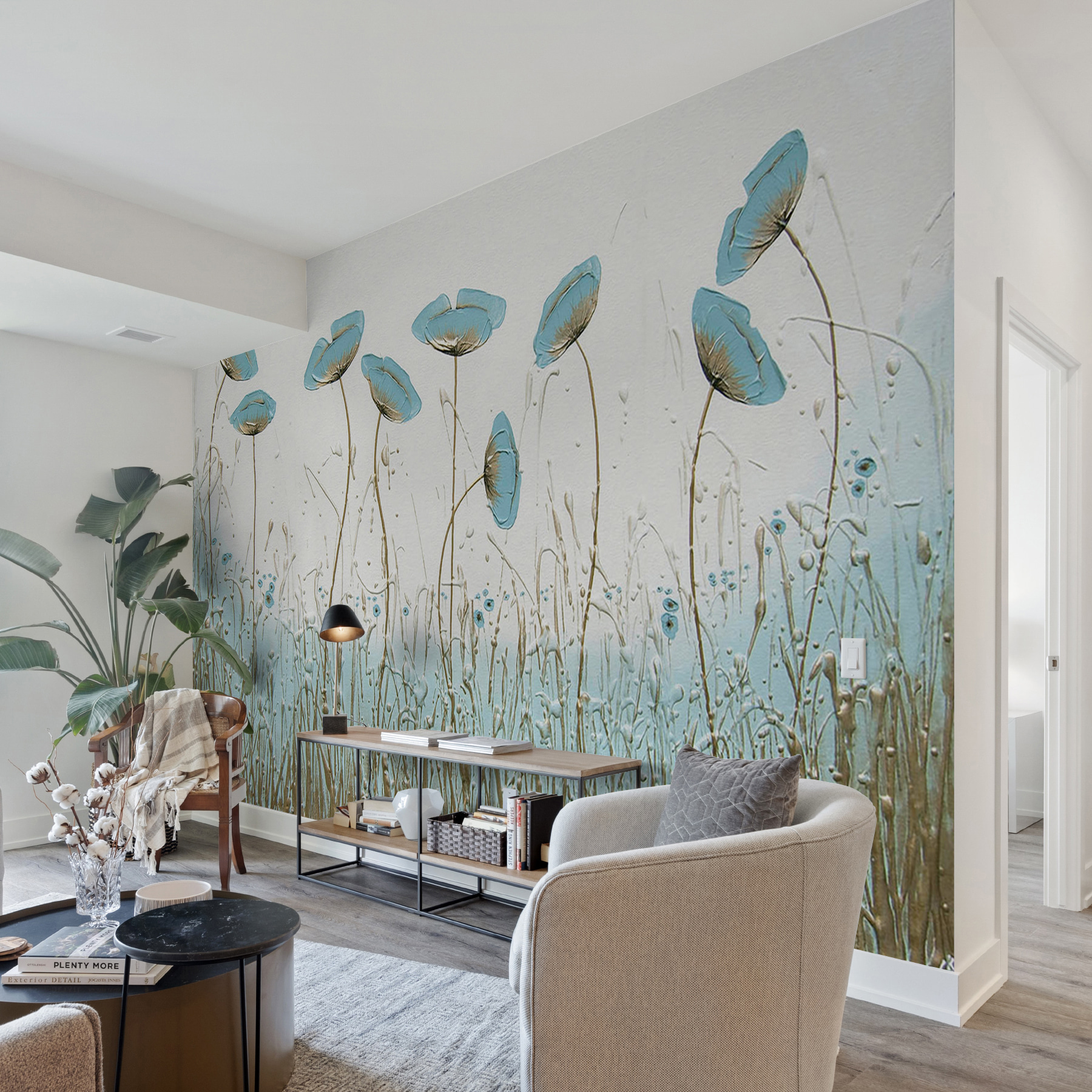Muralele cu flori au talentul de a transforma orice spațiu într-o pajiște senină; aceasta nu face excepție. Efectul de acuarelă adaugă o eleganță artistică fără a fi copleșitor – ideal pentru a crea un colț liniștit în camera de zi sau un fundal vesel în hol. Imaginați-vă trecând pe lângă ea în fiecare dimineață, cu cafeaua în mână… Îmbunătățiți instantaneu starea de spirit!