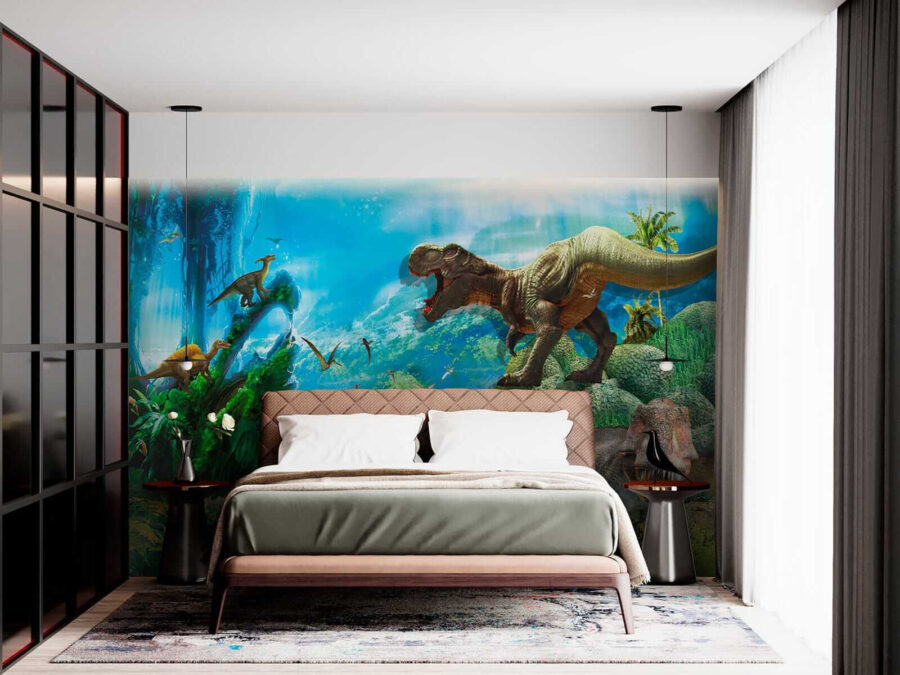 Imaginați-vă că pășiți într-o țară a minunilor preistorice de fiecare dată când intrați în camera dumneavoastră! Această pictură murală “Dinozaur cu dinți ascuțiți” este o explozie vibrantă din trecut – perfectă pentru copiii iubitori de dinozauri sau pentru oricine simte o legătură profundă cu aceste creaturi magnifice. Culorile sunt ieșite din comun, cu verdele luxuriant și albastrul cerului care aproape te fac să auzi foșnetul junglei… sau răgetul unui T. Rex în depărtare. Este ca și cum ai avea propriul tău Jurassic Park, fără riscuri! Serios, instalarea acestei picturi murale ar putea fi soluția ideală pentru a stimula imaginația și pentru a adăuga un plus de distracție și de farmec oricărui spațiu. Perfectă pentru dormitorul unui copil sau pentru o zonă de locuit jucăușă, este mai mult decât un simplu decor – este o aventură care stă să se întâmple!