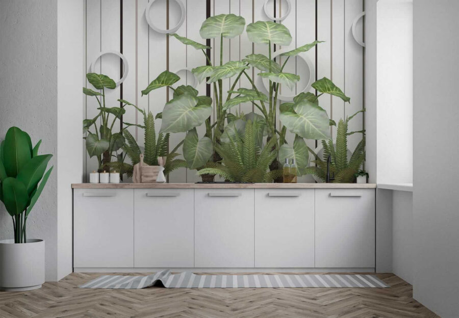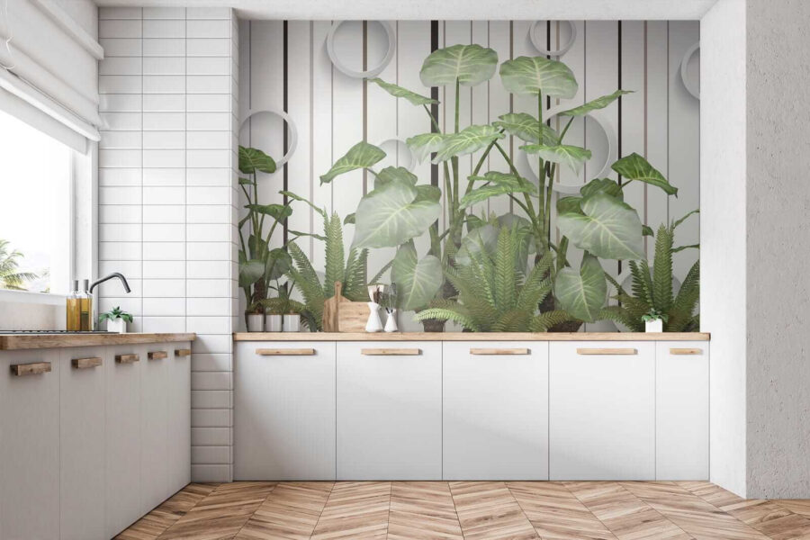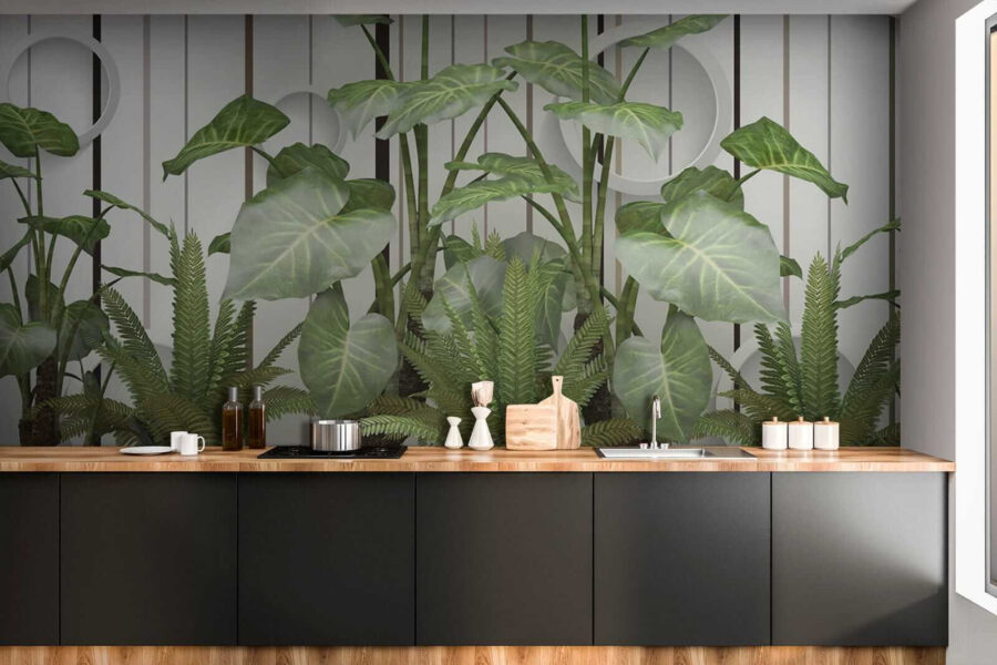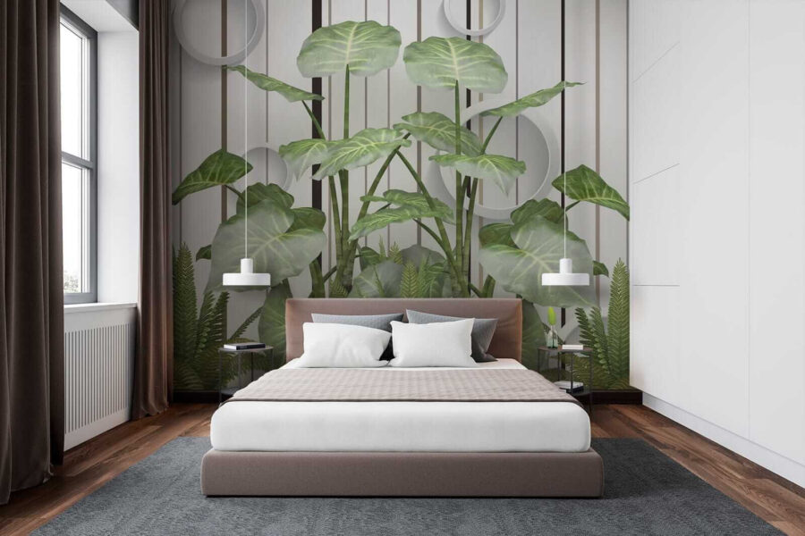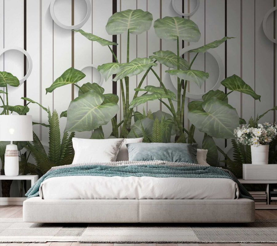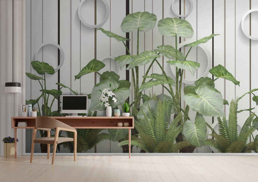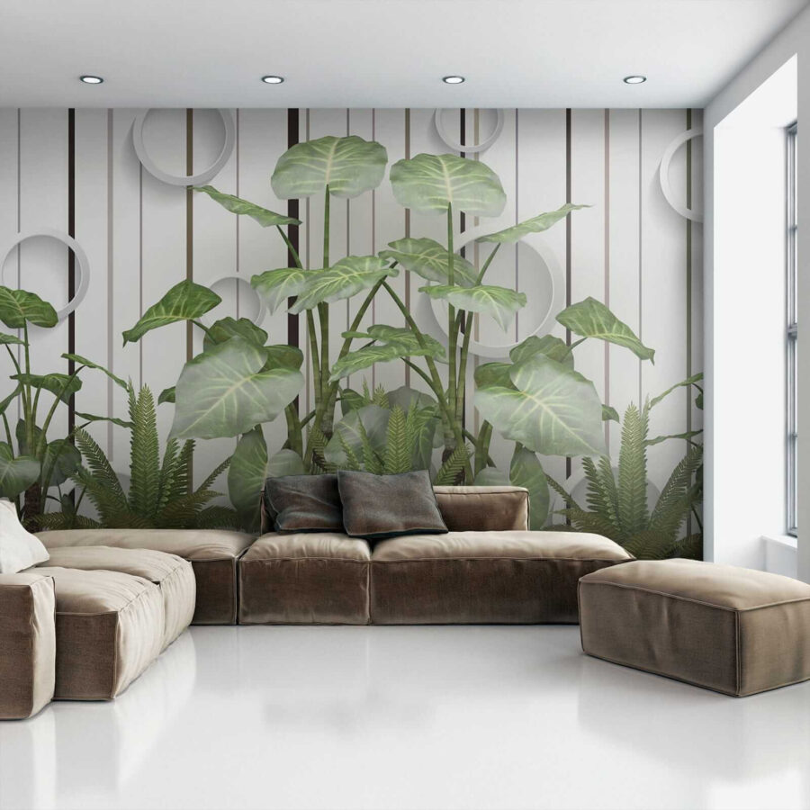 Imaginați-vă acest lucru: pereți acoperiți cu frunze vibrante, luxuriante, în contrast cu aceste dungi elegante… serios, este ca și cum ați avea o atingere a junglei în camera dvs. de zi, fără umiditate! Această pictură murală “Frunze luxuriante pe un perete cu dungi” îmbină fără efort esența liniștitoare a naturii cu o tentă modernă. Fie că sunteți un iubitor de plante cu degetul mare puțin negru sau doar tânjiți după un gust de aer liber, această pictură murală vă susține – nu este nevoie de udare. Imaginează-ți că te relaxezi pe canapea, simțind vibrația verde și proaspătă care te învăluie… dă viață întregii camere! În plus, aceste accente circulare cool adaugă un aer ciudat, 3D – vorbește despre ochi-prinderea. Este perfect pentru a injecta un pic de farmec și seninătate în orice spațiu. Nu este doar o pictură murală; este un starter de conversație, un stimulent de dispoziție, o mică felie de paradis cu frunze. 🌿