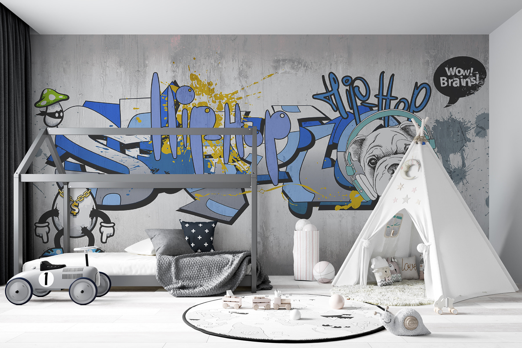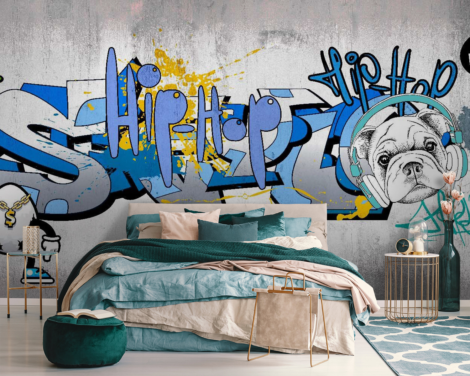 Imaginează-ți-o într-un birou de acasă sau luminând camera unui adolescent – dintr-o dată, camera pare mai vie, aproape că îți vorbește cu flerul său creativ. Pun pariu că va stârni discuții la fiecare întâlnire! Elementele hip-hop, precum bulldogul drăguț care poartă căști și personajele excentrice, injectează acestei picturi murale un farmec capricios și un pic de îndrăzneală. Veți vedea aceste tușe de culoare și vă veți trezi zâmbind – menținând acel spirit tineresc și dinamic în jur.