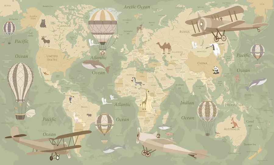 Copiilor le va plăcea să urmărească zborurile imaginare și să observe animalele drăguțe împrăștiate pe continente. Este ca propria lor emisiune National Geographic, fără televizor! Și hei, nu este doar pentru cei mici. Această pictură murală adaugă un strop de uimire pentru oricine iubește un pic de dorință de a călători sau de farmec vintage.