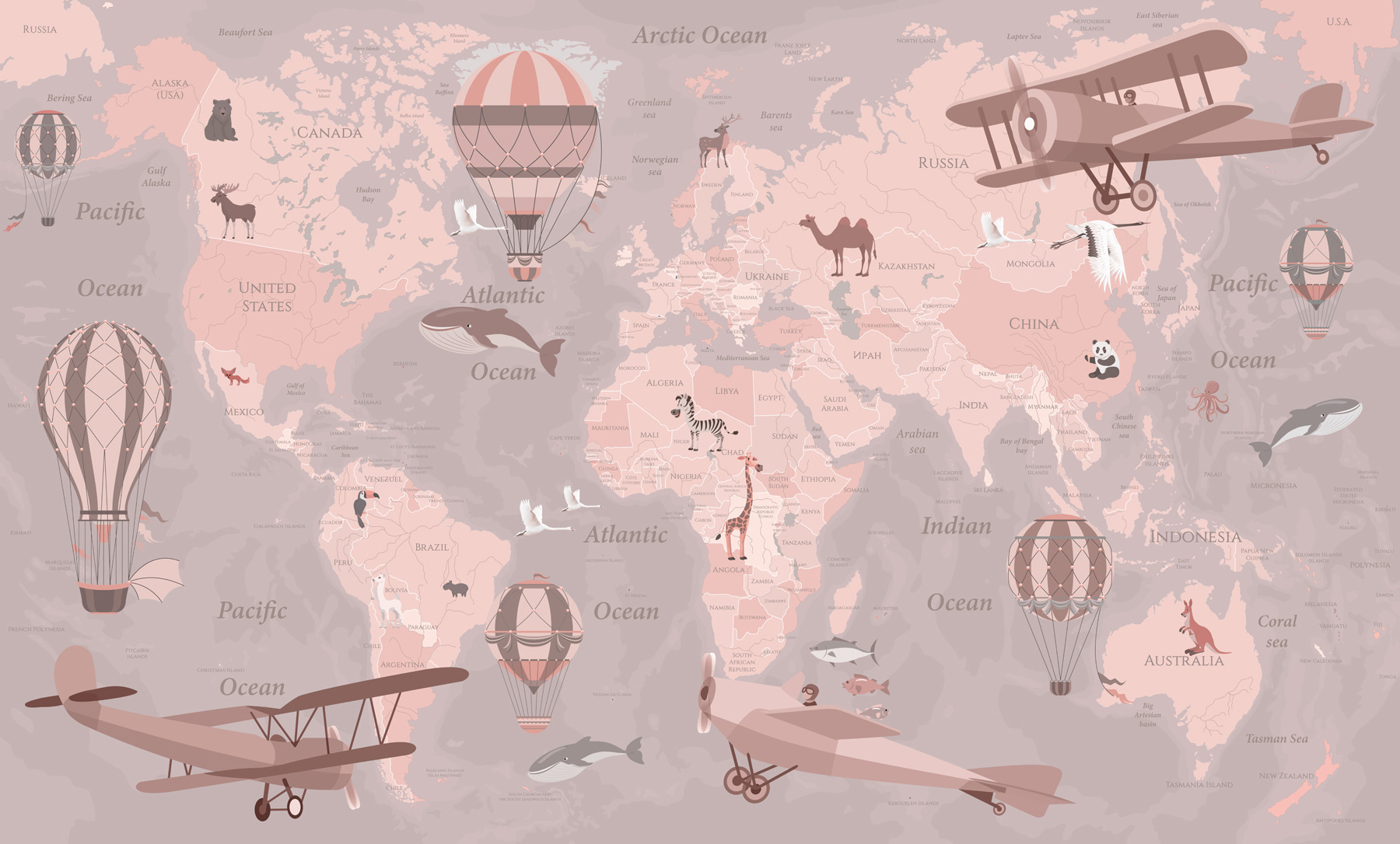 Bună ziua! Imaginează-ți asta: o hartă murală de vis a lumii, perfectă pentru camera micului tău explorator. Are avioane de epocă și baloane cu aer cald capricioase care plutesc, dând întregului ansamblu o atmosferă jucăușă, gata de aventură. Imaginează-ți copilul arătând spre diferitele animale împrăștiate pe continente, visând la locuri îndepărtate precum Africa cu girafele sale sau Asia cu pandasii săi. Nu este doar o hartă; este o întreagă lume a imaginației lipită pe perete, transformând orice spațiu plictisitor într-un centru de aventură plin de viață. Perfect pentru a visa cu ochii deschiși, a povesti și a planifica acele călătorii epice imaginare. În plus, este o modalitate fabuloasă de a strecura un pic de învățare în ziua lor, fără să se simtă, știi tu, ca la școală. Excelent pentru a stârni curiozitatea și, cine știe, poate pentru a inspira următorul mare explorator!