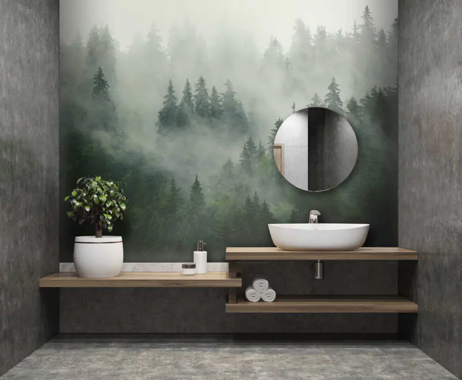 Hei, aruncă o privire la această uimitoare pictură murală “Copac cu multe frunze” – este ca și cum ai avea o pădure liniștită și cețoasă chiar în camera ta de zi! Perfect pentru cei care iubesc natura în interior. Imaginați-vă sorbindu-vă cafeaua de dimineață sau relaxându-vă cu o carte pe acest fundal… vibrații senine, nu-i așa? Copacii care se estompează în ceață creează un sentiment aproape magic, ca și cum ați păși într-o lume imediat după colțul obișnuinței. Este grozav dacă vă place arta murală de designer sau pur și simplu doriți ceva care să vă facă pe dvs. (și pe invitații dvs.) să spuneți “Wow!” de fiecare dată când intrați în cameră. În plus, are acest verde calmant care te face să te simți bine – cine ar fi crezut că un perete poate fi atât de relaxant? Deci, sunteți pregătiți să aduceți pădurea acasă? 🌲✨