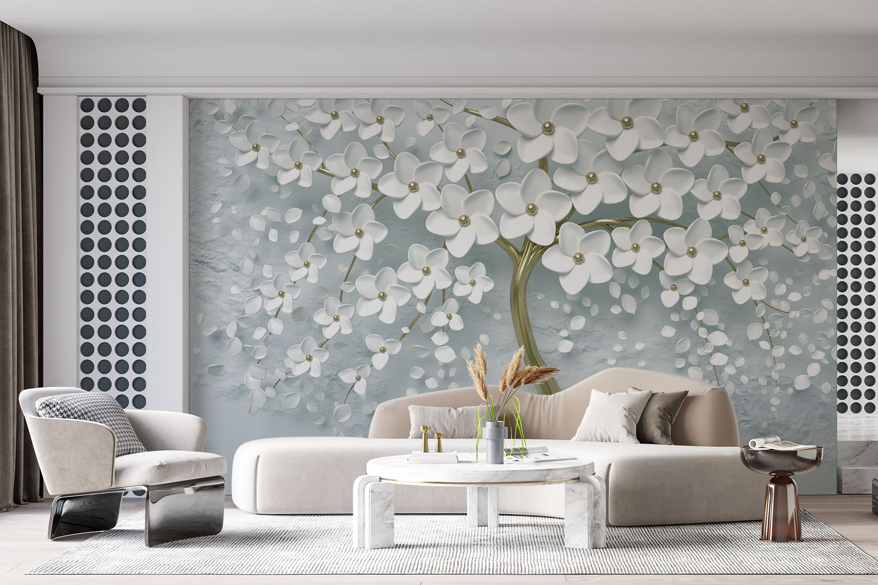 Ați intrat vreodată într-o cameră și v-ați simțit instantaneu calm? Exact asta face acest mural “Elegant White Blossoms on Twisting Branches” – ca o îmbrățișare blândă din partea naturii. Imaginați-vă că ridicați privirea de la cafeaua de dimineață și vedeți aceste flori albe, delicate, dansând pe perete. Efectul 3D este foarte tare, făcând florile să iasă în evidență ca și cum ar fi gata să plutească ușor. Acesta transformă orice spațiu într-o oază liniștită, perfectă pentru relaxare după o zi lungă. Această pictură murală nu doar vă decorează pereții, ci insuflă o atmosferă senină și sofisticată chiar în casa dvs. Perfect pentru oricine iubește un pic de natură cu stilul său – fără nici o udare! 🪴✨