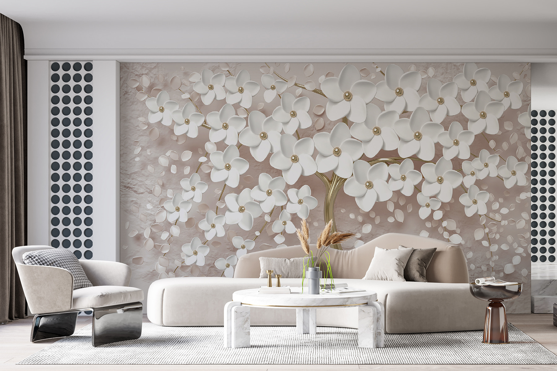 Bună ziua! Imaginează-ți asta: intri într-o cameră și ochii tăi se îndreaptă imediat spre aceste flori superbe care cad în cascadă pe ramuri – atât de grațioase și elegante, încât parcă ar fi o grădină fantastică infuzată cu o atingere de magie. Pictura murală “Flori elegante în cascadă pe ramuri învârtite” este absolut perfectă pentru cei care doresc un strop de fantezie cu un strop de rafinament. Imaginați-vă că organizați o cină festivă, iar invitații dvs. sunt imediat captivați de această piesă uimitoare. Poate că ceaiul de după-amiază devine un pic mai încântător, sorbindu-vă băutura în timp ce vă simțiți ca și cum ați fi sub un copac înflorit. Este mai mult decât o simplă pictură murală – este o experiență, o piesă care aduce viață oricărui spațiu. Dă pereților tăi o poveste de spus, fără să scoți un cuvânt!