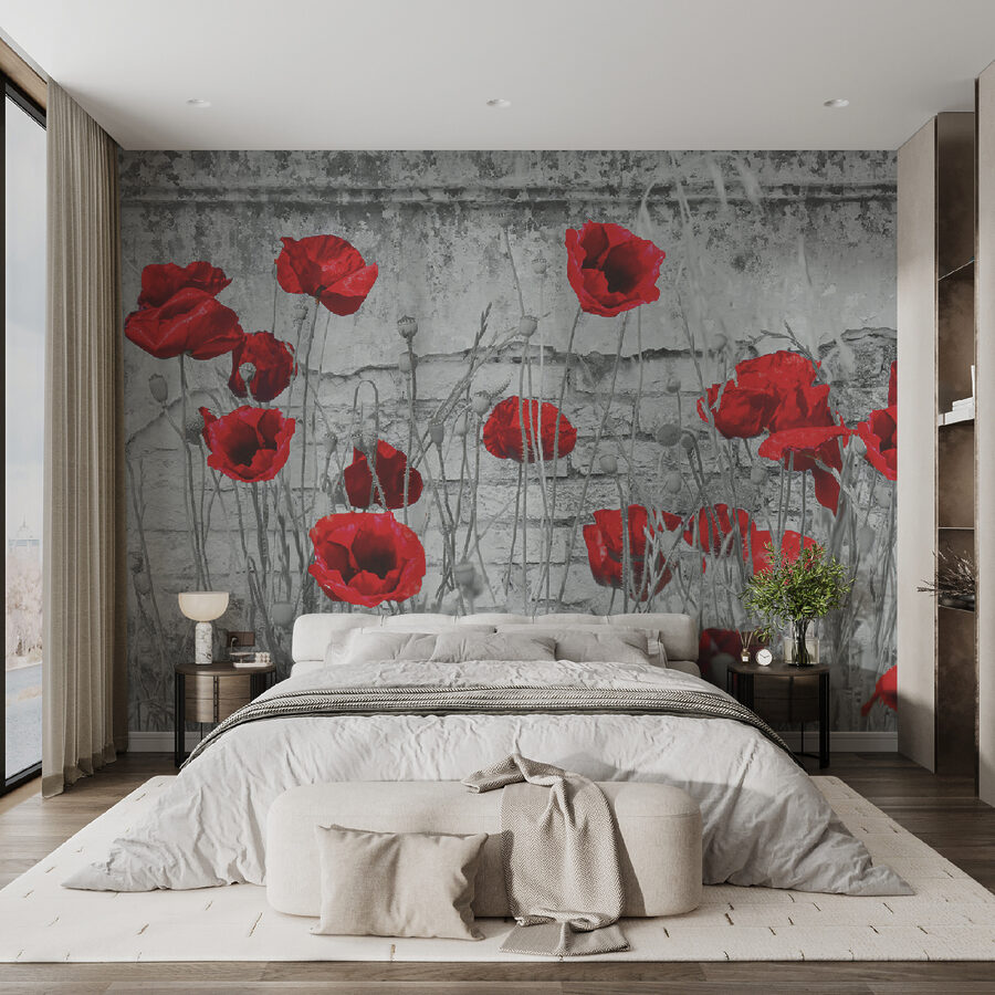 Imaginați-vă că intrați într-o cameră și sunteți întâmpinați instantaneu de o pată de maci roșii, vii, pe un perete rustic, afectat de vreme. Această pictură murală este ca o frumoasă grădină secretă în mijlocul orașului. Este vorba despre contrast – flori aprinse pe un fundal aspru, creând o atmosferă care este în același timp confortabilă și tensionată. Gândiți-vă la asta: fiecare privire la aceste petale vibrante ar putea înveseli starea de spirit, mai ales într-o zi ploioasă. Ideală pentru cineva care iubește o notă de natură și un strop de dramatism în decorul său. În plus, cine nu ar vrea să se simtă puțin artistic de fiecare dată când trece pe lângă ea? Și, hei, este mult mai puțin de întreținere decât o grădină reală!
