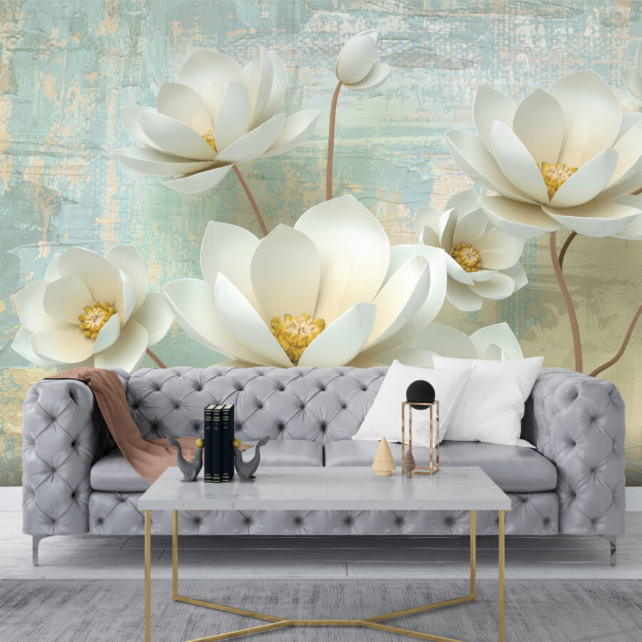 Fototapet Flori elegante pe fundal texturat. (SKU: u40938)