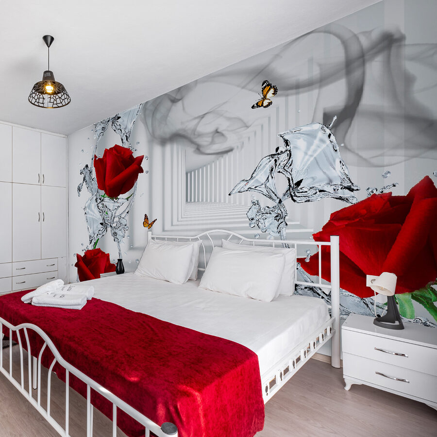 1 recenzie pentru Fototapet Trandafiri roșii plutitori cu fluturi
