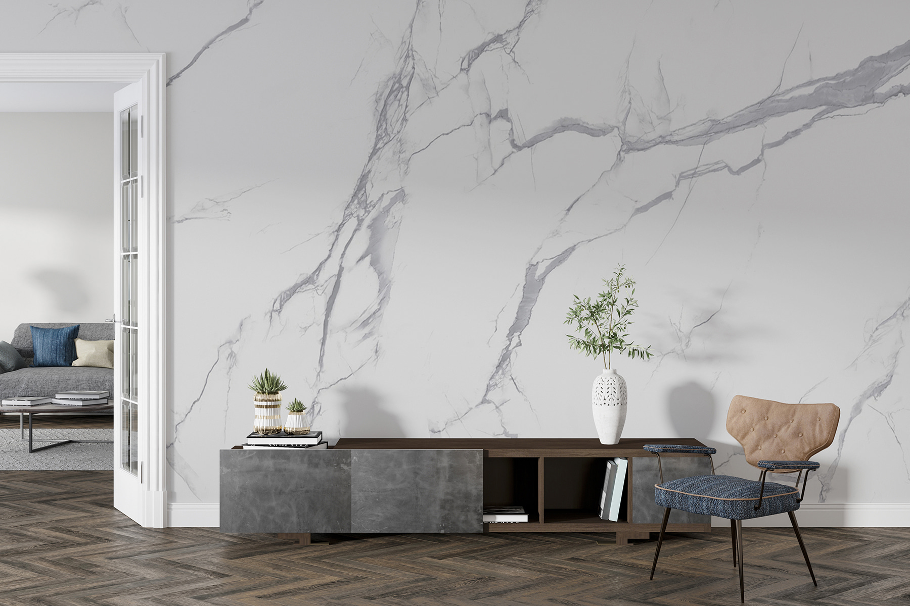 Transformați orice spațiu cu acest mural uimitor din marmură albă, cu vene gri delicate care dansează pe suprafață. Este ca și cum ai aduce o operă de artă direct dintr-o galerie în casa ta, fără prețul ridicat. Imaginați-vă intrând într-o cameră în care pereții șoptesc eleganță, făcând-o instantaneu să pară mai spațioasă și aerisită.