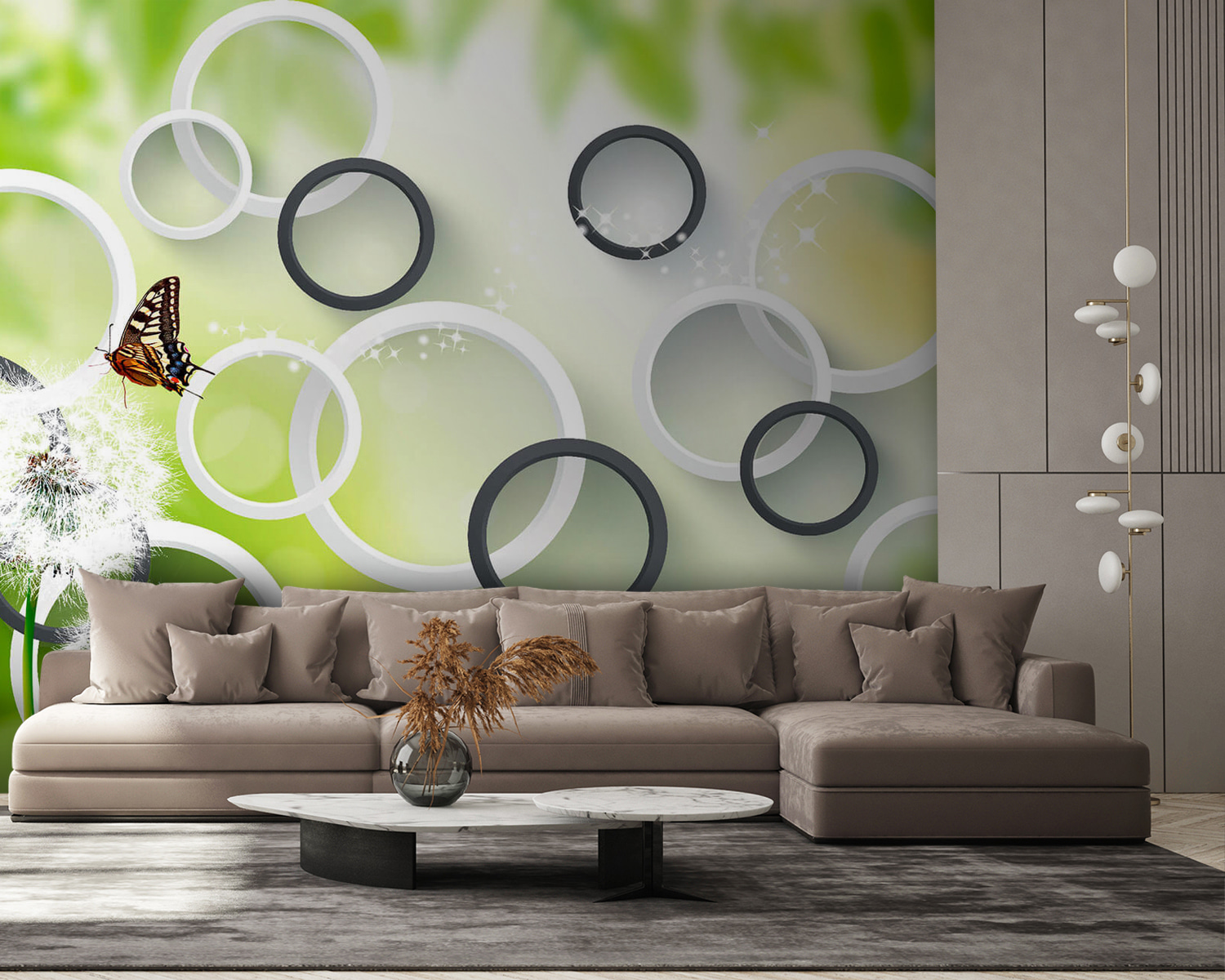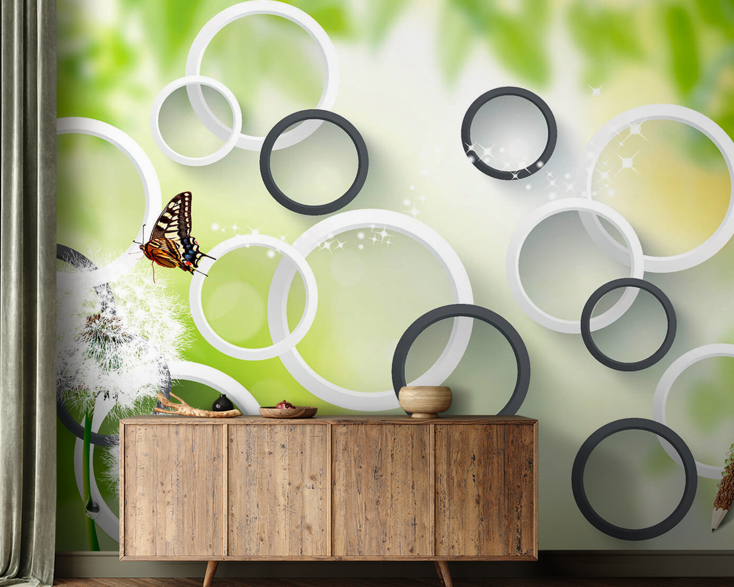 Transformați orice cameră cu acest uimitor mural „Fluture pe o floare de păpădie”. Imaginați-vă acele pufuri delicate de păpădie legănându-se în adierea vântului, cu un fluture delicat așezat în apropiere – pură magie, nu-i așa? Verdele vibrant și cercurile jucăușe aduc o atmosferă proaspătă și modernă, făcând spațiile să pară pline de viață, dar și liniștitoare. Este ca și cum ați aduce o bucată de natură în interior, fără a strănuta! Perfect pentru un colț de lectură confortabil sau o cameră de joacă capricioasă, acest mural invită la visare și inspiră creativitatea. Cine nu și-ar dori o doză zilnică de frumusețe, mai ales când aceasta poate încuraja puțin imaginația? Lăsați acest mural să fie fundalul propriilor dvs. mici aventuri!