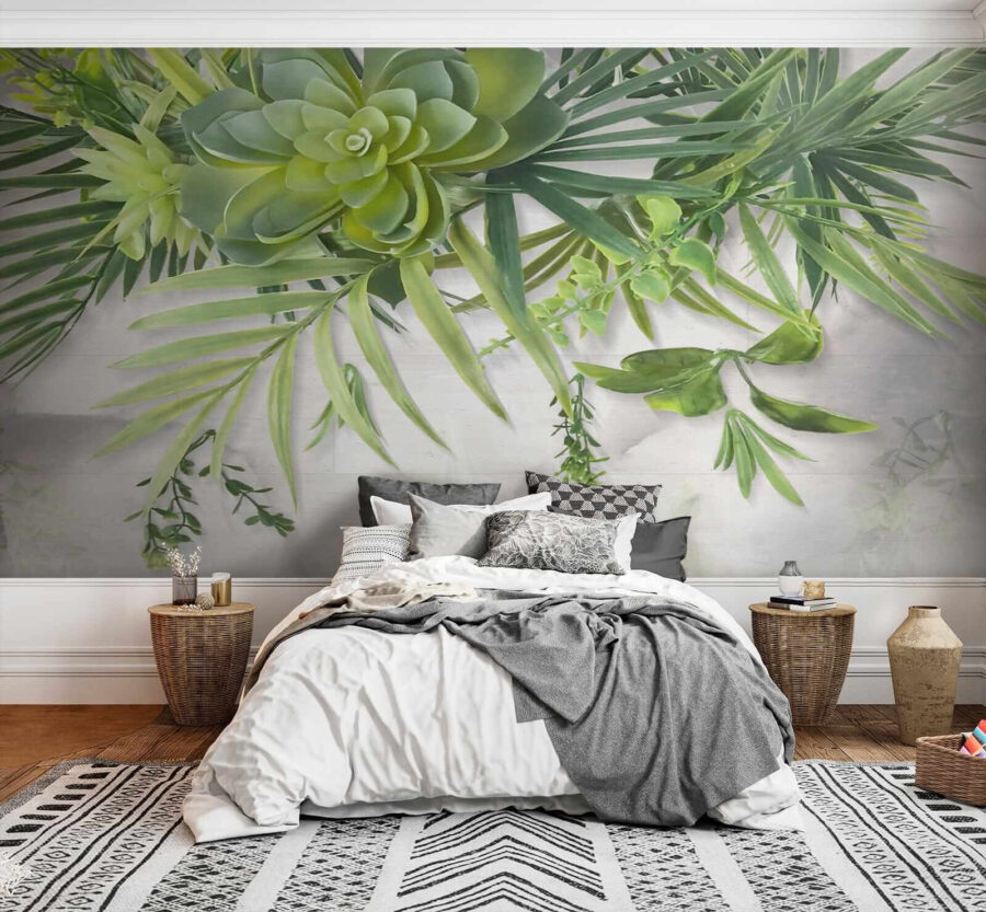 Imaginați-vă sorbindu-vă cafeaua de dimineață sub un baldachin de frunze verzi – fără să părăsiți camera de zi! Acest “Fototapet Green succulents and leafy branches overhead” transformă orice spațiu într-o evadare luxuriantă și liniștită. Aceste suculente vibrante și ramurile delicate cu frunze care atârnă deasupra par aproape tridimensionale. Este perfect pentru a respira un pic din natură, mai ales dacă aveți degetul mare negru (nu necesită udare!). Fie că visezi la o junglă urbană în oraș, fie că dorești să adaugi o notă revigorantă la bufetul tău cu tematică naturală, această pictură murală te va ajuta. Este ca și cum ai avea o bucată de grădină botanică înăuntru – fără gândacii enervanți! Adaugă zen instantaneu în orice cameră… și poate un pic de invidie din partea prietenilor tăi.