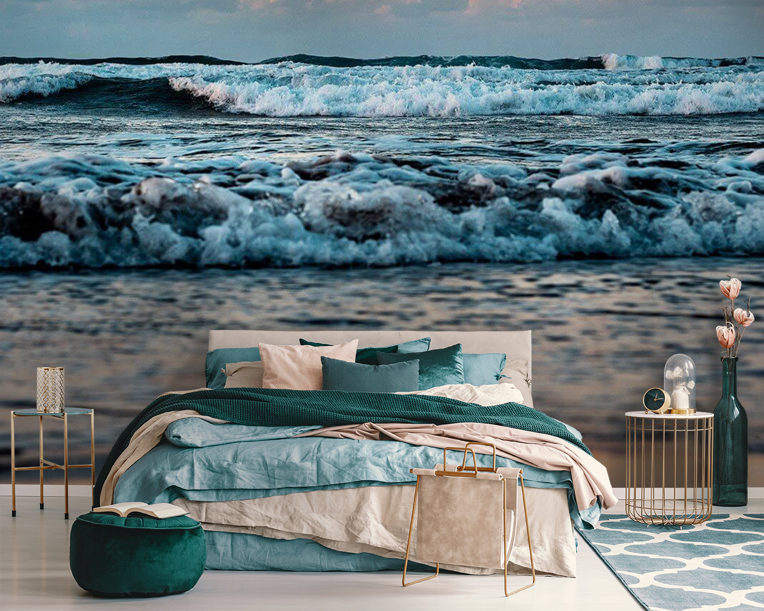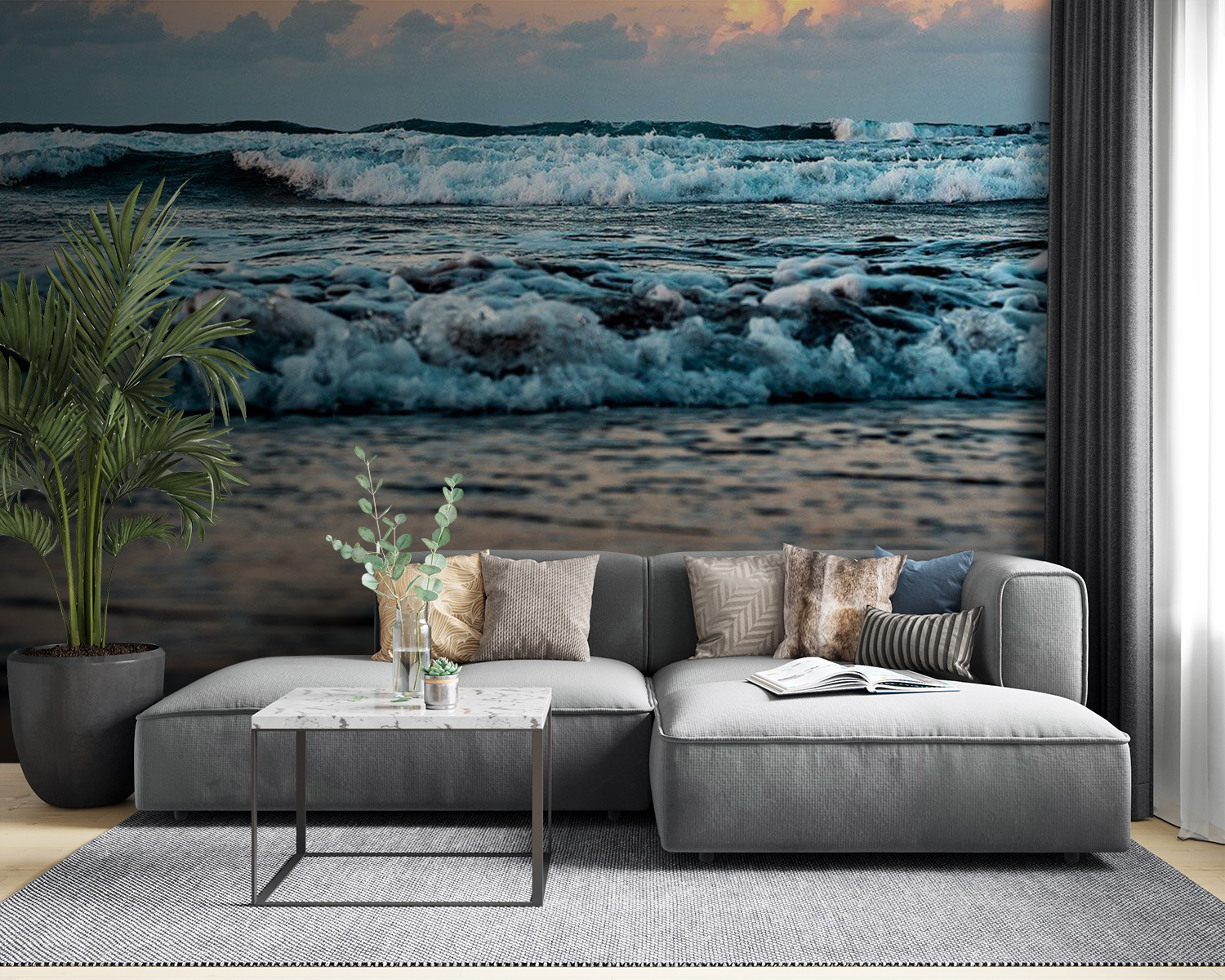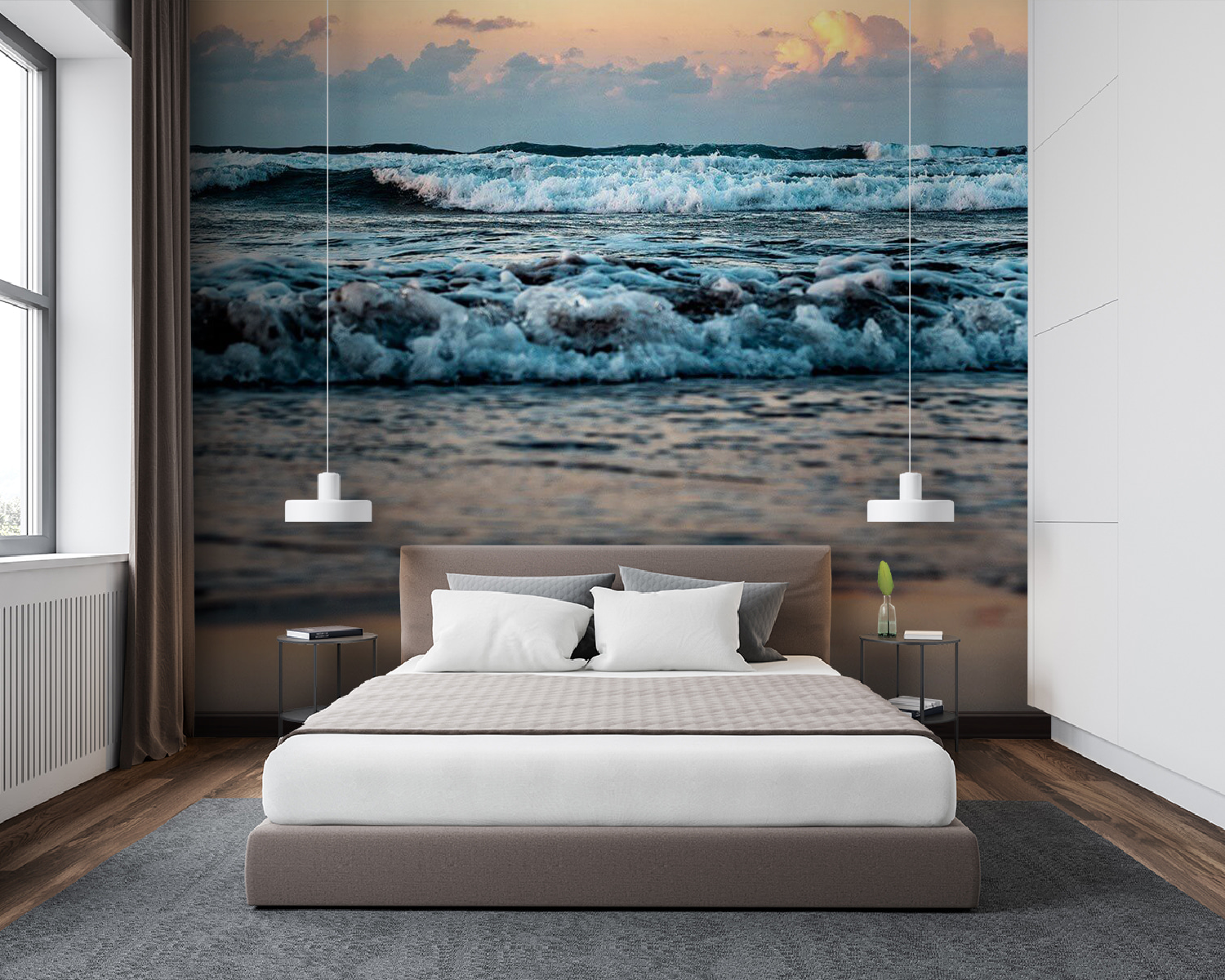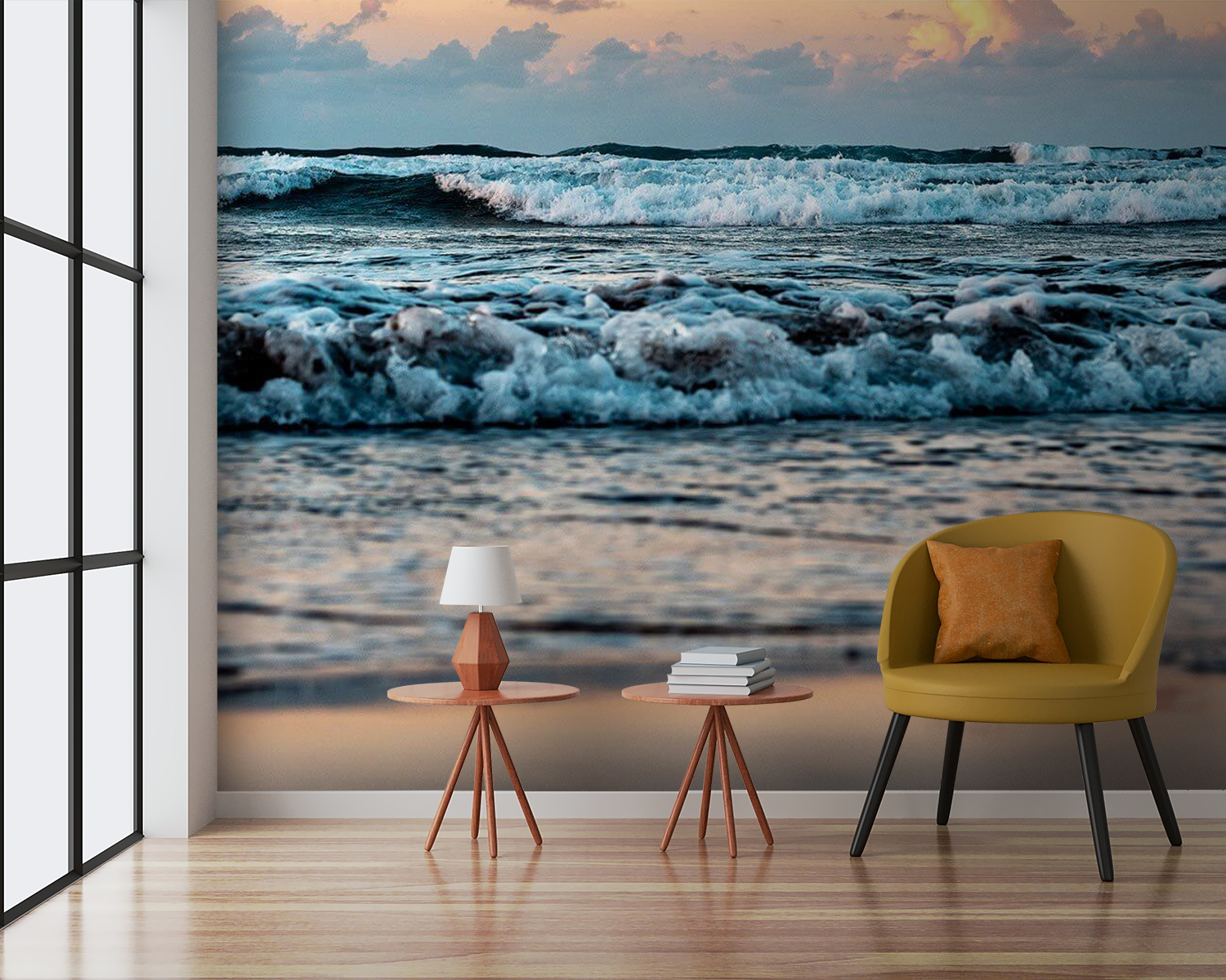 Ați visat vreodată cu ochii deschiși să vă treziți la sunetul valurilor blânde și la un cer însorit? Această pictură murală, “Waves Dance Under a Sunrise Sky” (Valurile dansează sub cerul răsăritului), aduce acea atmosferă de vis, de coastă, chiar în spațiul dvs! Imaginați-vă că pășiți într-o cameră în care valurile par să danseze cu culorile zorilor. Nu este doar o imagine – este o întreagă vibrație, care captează seninătatea de pe malul mării. Perfect pentru atunci când vrei să te simți ca și cum ai fi mereu în vacanță, chiar dacă este o dimineață de luni. Pune-l într-un living sau într-un dormitor și privește cum transformă spațiul cu esența sa liniștitoare. În plus, este ceva atât de liniștitor la acele nuanțe pastelate care se amestecă cu valurile spumoase. Pregătește-te să auzi complimentele… și poate și puțină invidie!