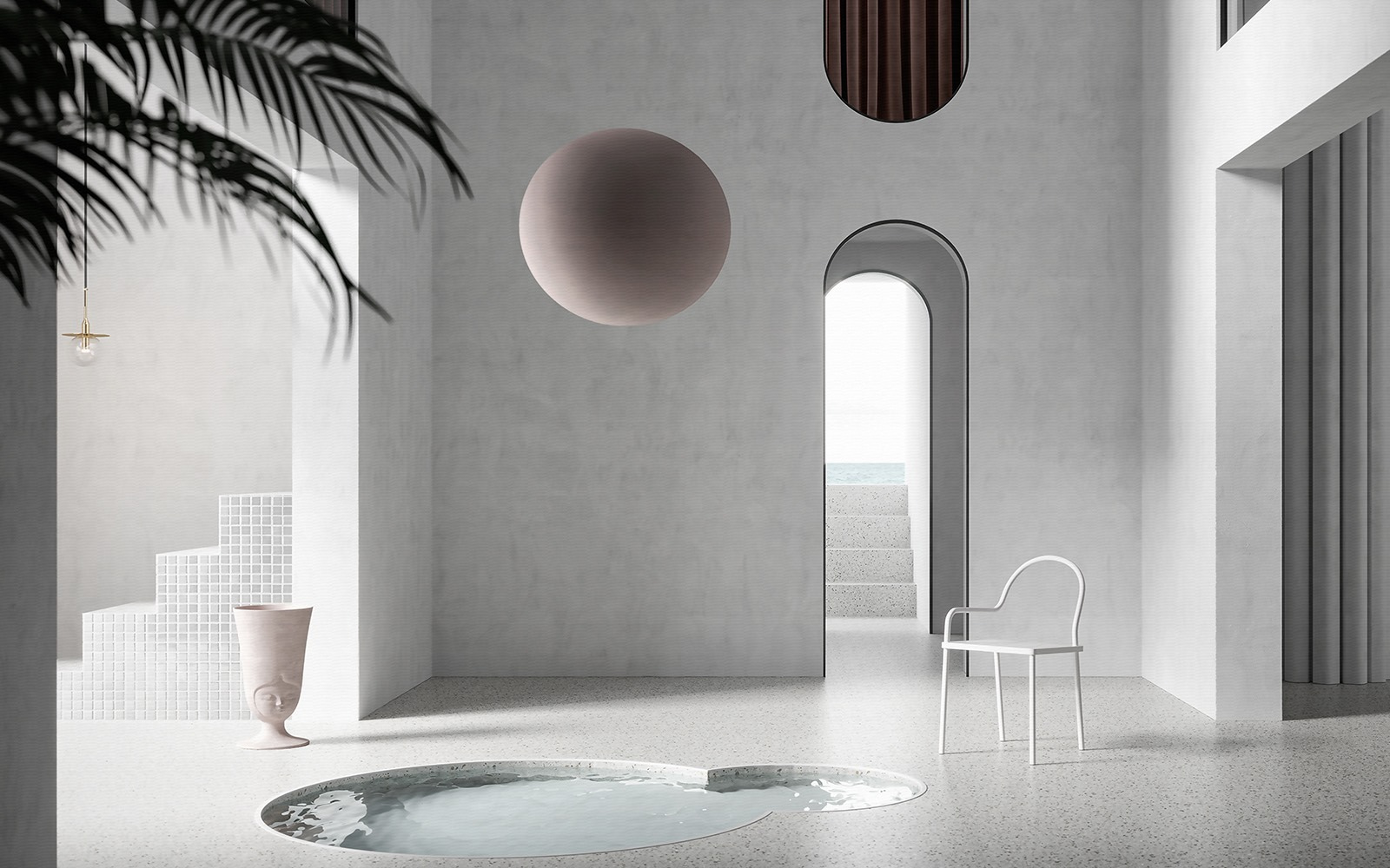 Intrați într-un paradis de vis cu această pictură murală uimitoare care prezintă o cameră senină, cu o piscină încântătoare și un scaun șic. Imaginați-vă sorbind o băutură cu gheață, simțind lumina soarelui dansând pe apă și lăsând vibrațiile calme să vă cuprindă. Este ca și cum ai aduce o felie de paradis în casă! Culorile reci și designul minimalist creează un fundal perfect pentru orice spațiu, transformând pereții în ferestre către relaxare fără sfârșit. Prietenii ar putea crede că ați evadat într-un refugiu la modă. Este o modalitate ușoară de a face viața de zi cu zi să pară puțin mai specială.