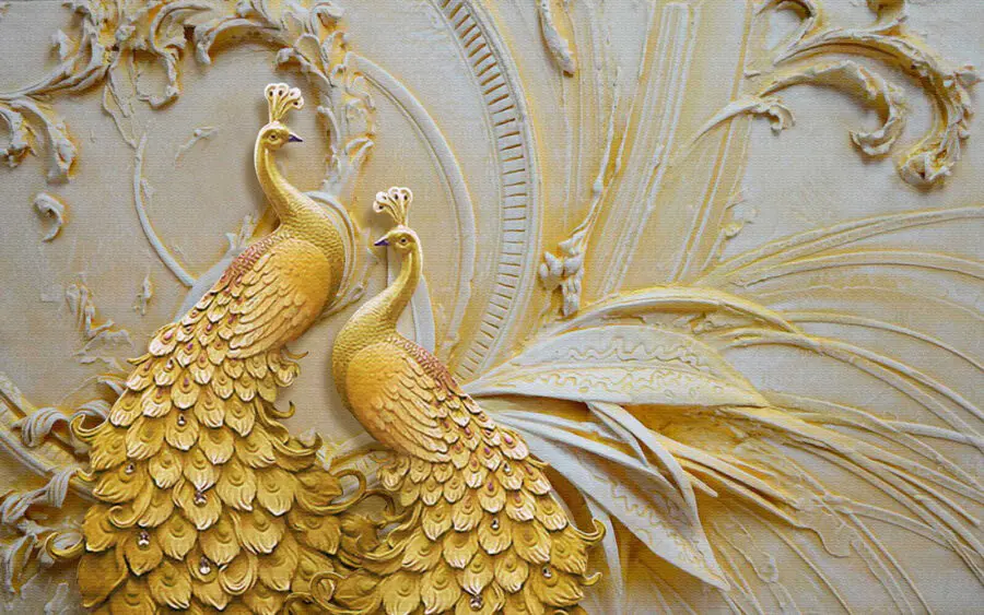 Transformați-vă spațiul cu farmecul păunilor eleganți în relief complicat. Această pictură murală nu este doar o decorațiune de perete; este un starter de conversație. Imaginați-vă că intrați într-o cameră și vă simțiți instantaneu transportați într-o grădină senină. Aceste frumuseți cu pene par să danseze, aducând căldură și personalitate pereților dumneavoastră. Nuanțele blânde adaugă o notă de liniște, făcându-l perfect pentru un living confortabil sau un dormitor liniștit. Fiecare privire ar putea inspira un vis cu ochii deschiși despre călătorii exotice sau după-amiezi leneșe la un ceai. Este ca și cum ai avea o operă de artă care îți însuflețește rutina zilnică. Cine nu și-ar dori să se trezească la o astfel de priveliște încântătoare?
