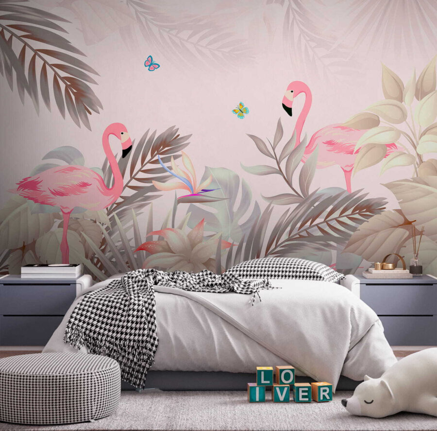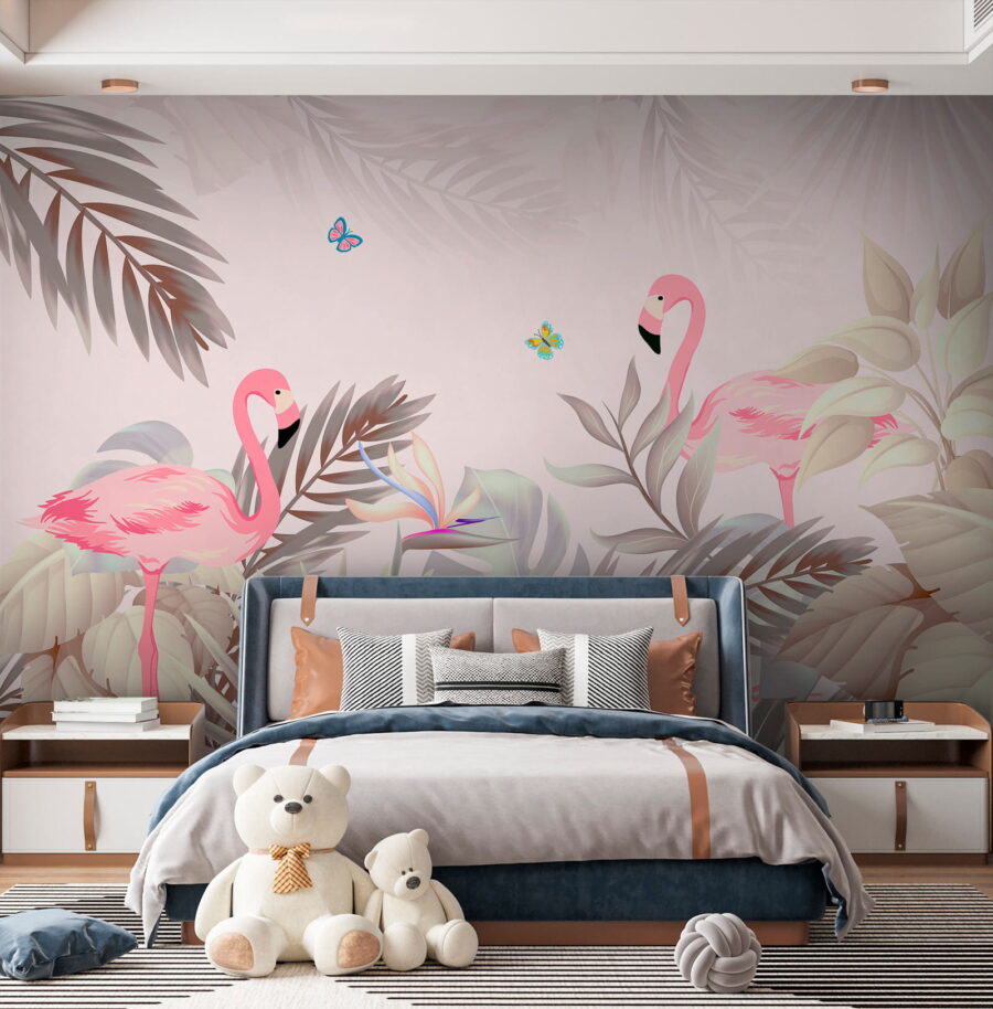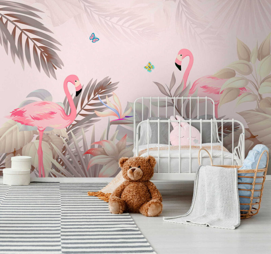 Imaginați-vă că intrați într-o cameră care se simte ca un paradis tropical – culorile moi și detaliile rafinate ale acestei picturi murale “Fluture albastru și roz” aduc atât de multă viață în orice spațiu! Cu flamingo drăguțe și fluturi vibranți, este ca o mini-vacanță pe peretele tău. Perfectă pentru oricine iubește decorul unic, această pictură murală din categoriile “Picturi murale cu animale” și “Picturi murale cu natură” transformă orice cameră într-o escapadă de vis, relaxantă.