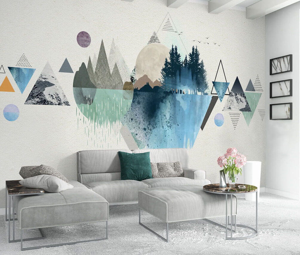 Transformați orice cameră într-un refugiu liniștit cu fototapetul „Apă și copaci într-un peisaj”. Imaginați-vă că pășiți într-un spațiu care seamănă cu o pădure liniștită, fără insecte, desigur! Acest design uimitor combină culori acuarelate delicate și forme geometrice, creând un fundal la fel de liniștitor ca un pârâu șopotitor.