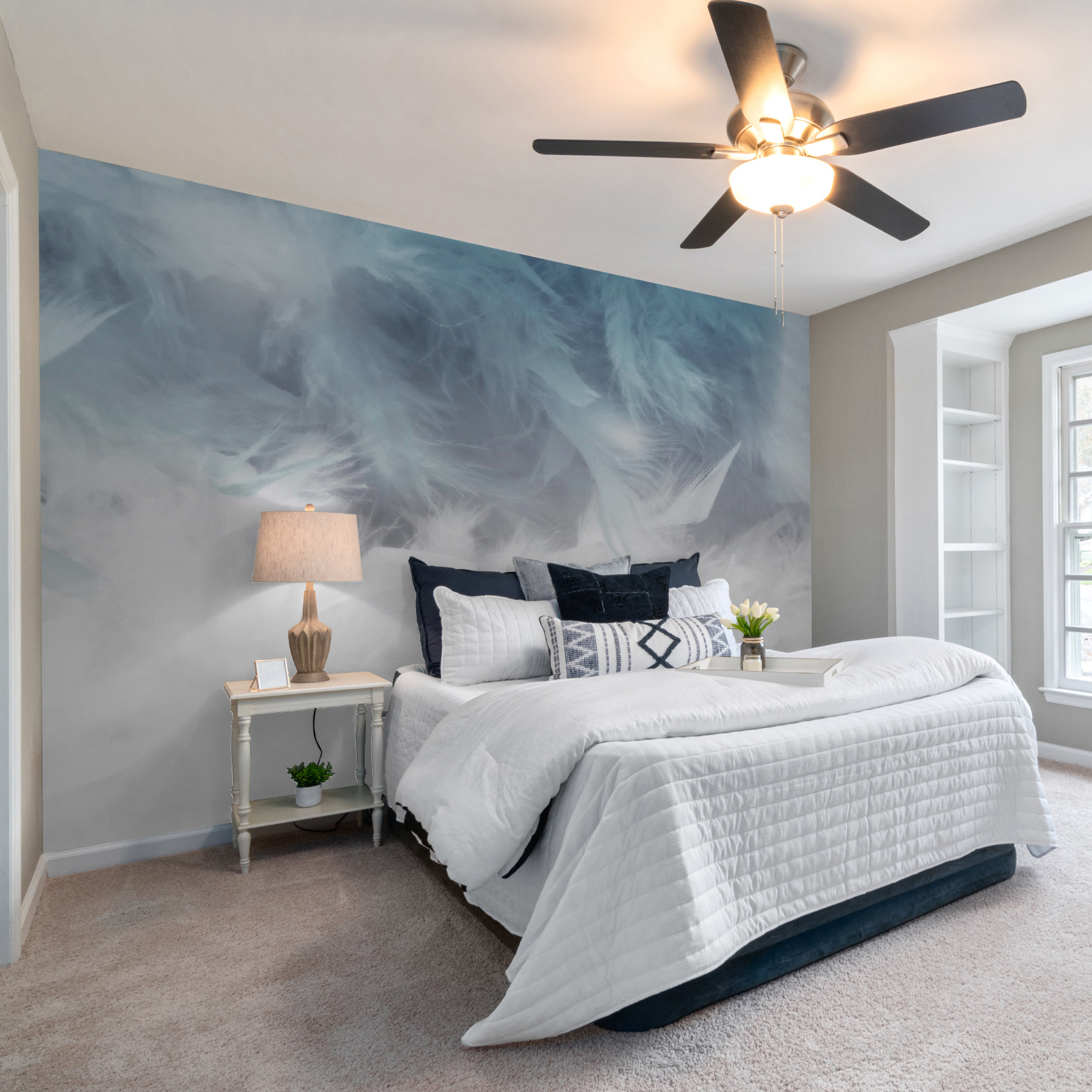 Este perfect pentru un colț de lectură confortabil sau un dormitor de vis. De fiecare dată când cineva intră, este ca și cum ar fi dat peste o evadare secretă. În plus, stârnește conversații – cui nu-i place să vorbească despre pene, nu-i așa? Această pictură murală adaugă un caracter unic, făcând pereții să se simtă mai puțin ca niște limite și mai mult ca o pânză de povești. Un pic de capriciu merge foarte departe!