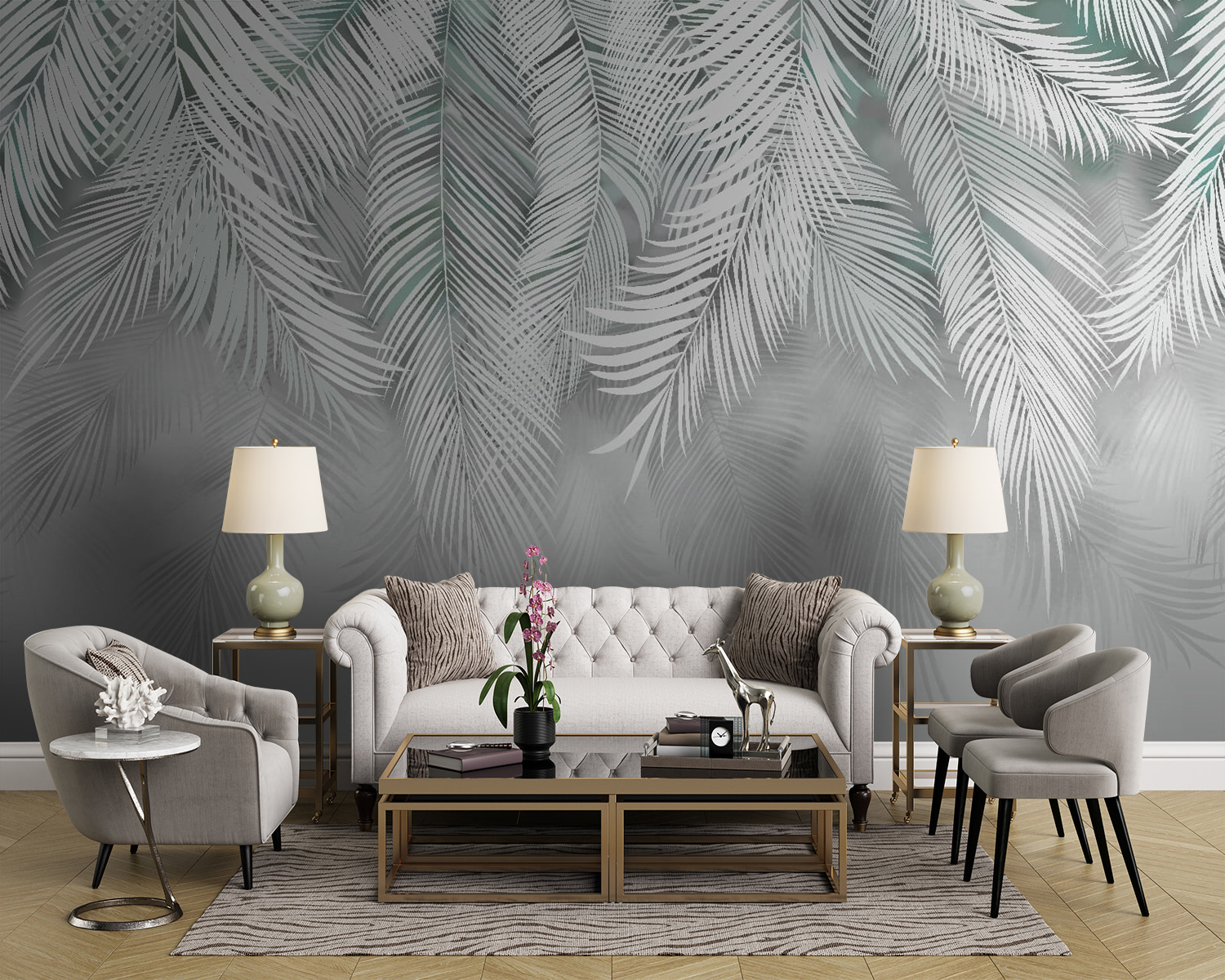 Transformarea unei camere poate părea magică, mai ales atunci când adăugați această pictură murală elegantă cu frunze de palmier albe. Imaginați-vă sorbind o ceașcă de cafea, așezat în fotoliul dvs. preferat, în timp ce aceste frunze moi și complicate creează o atmosferă senină în jurul dvs. Este ca și cum ați aduce o felie de tropice în casă – fără arsuri solare. Nuanțele delicate ale acestei picturi murale o fac foarte ușor de combinat cu orice decor, fie că este boho-chic sau minimalist. Imaginați-vă că primiți prieteni, iar aceștia nu se pot abține să nu admire peretele care pare o evadare. Cu energia sa calmantă, nu va decora doar spațiul tău, ci îți va ridica starea de spirit. Cine ar fi crezut că arta murală se poate simți ca o mini-vacanță?