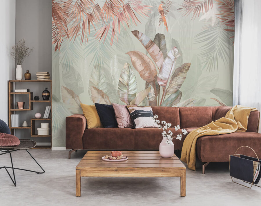8 recenzii pentru Fototapet Frunze tropicale cu nuanțe pastelate