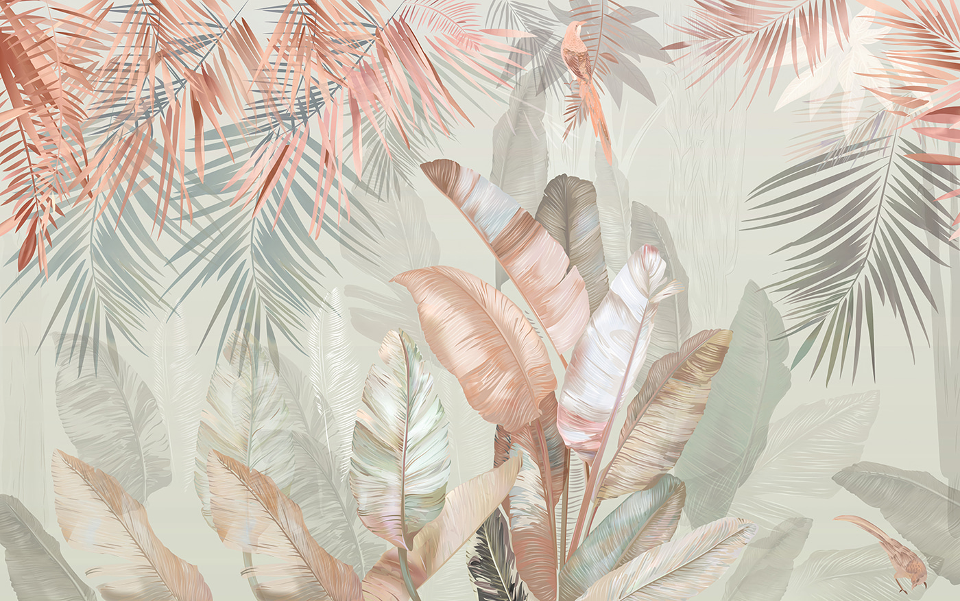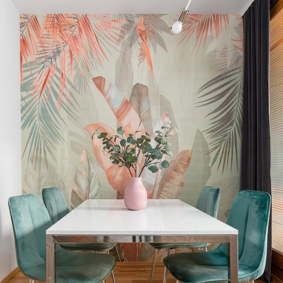 8 recenzii pentru Fototapet Frunze tropicale cu nuanțe pastelate