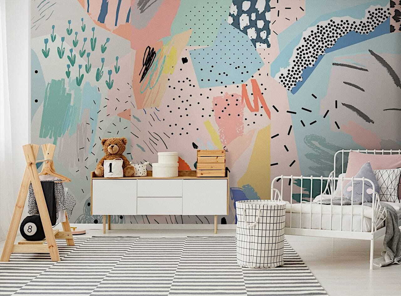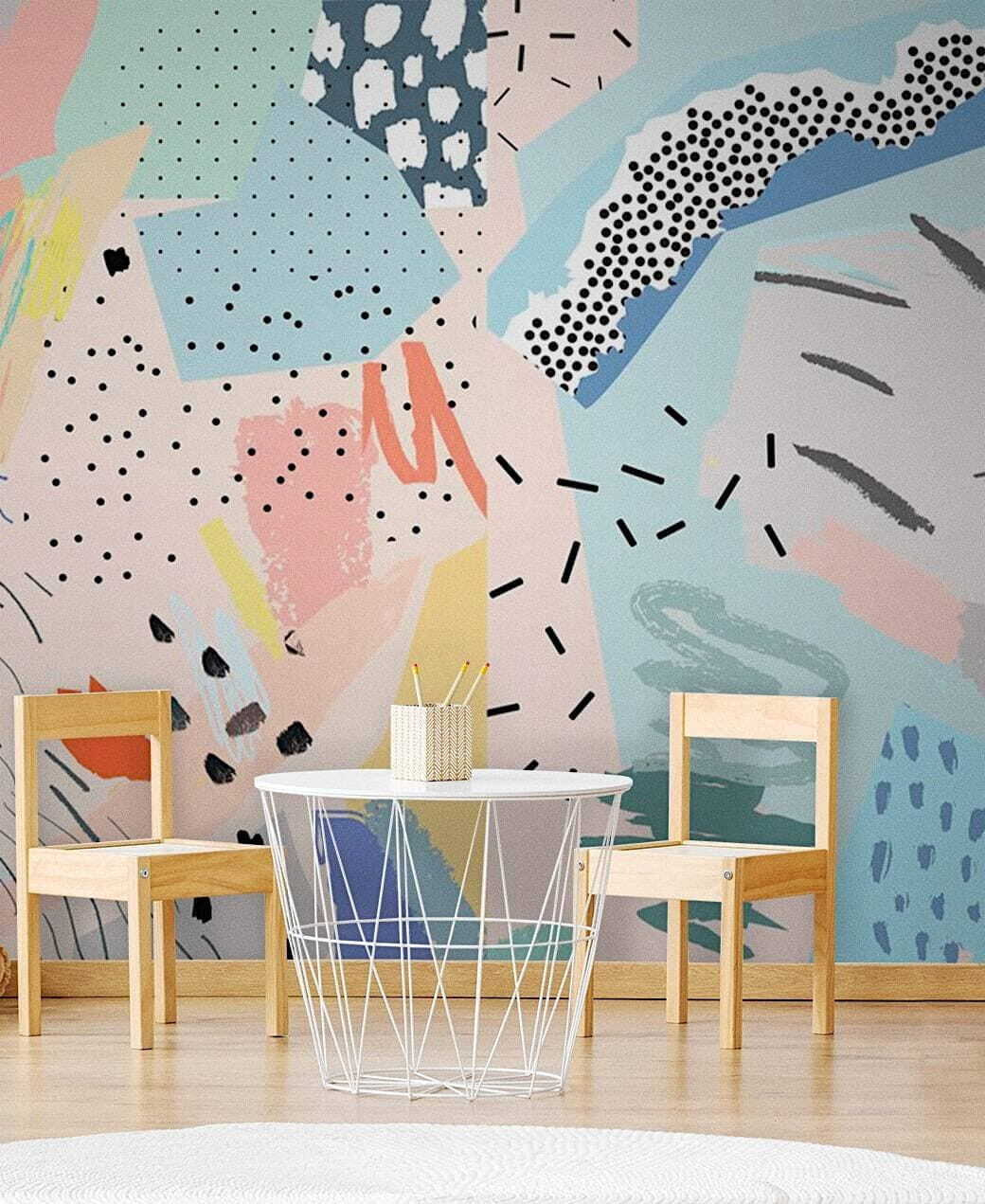 Aveți o cameră de copil care are nevoie de un strop de magie? Aruncați o privire la această pictură murală abstractă colorată – este ca o cuvertură patchwork jucăușă pentru pereții dvs. Veți găsi stropi de pasteluri moi amestecate cu bucăți mai îndrăznețe; micile stropi de culoare și formele ciudate sunt pur și simplu de vis. Imaginați-vă că imaginația micuțului dvs. o ia razna cu toate aceste modele amuzante la care să se uite! Este ca și cum o carte de povești a explodat pe perete – în cel mai bun mod posibil.
