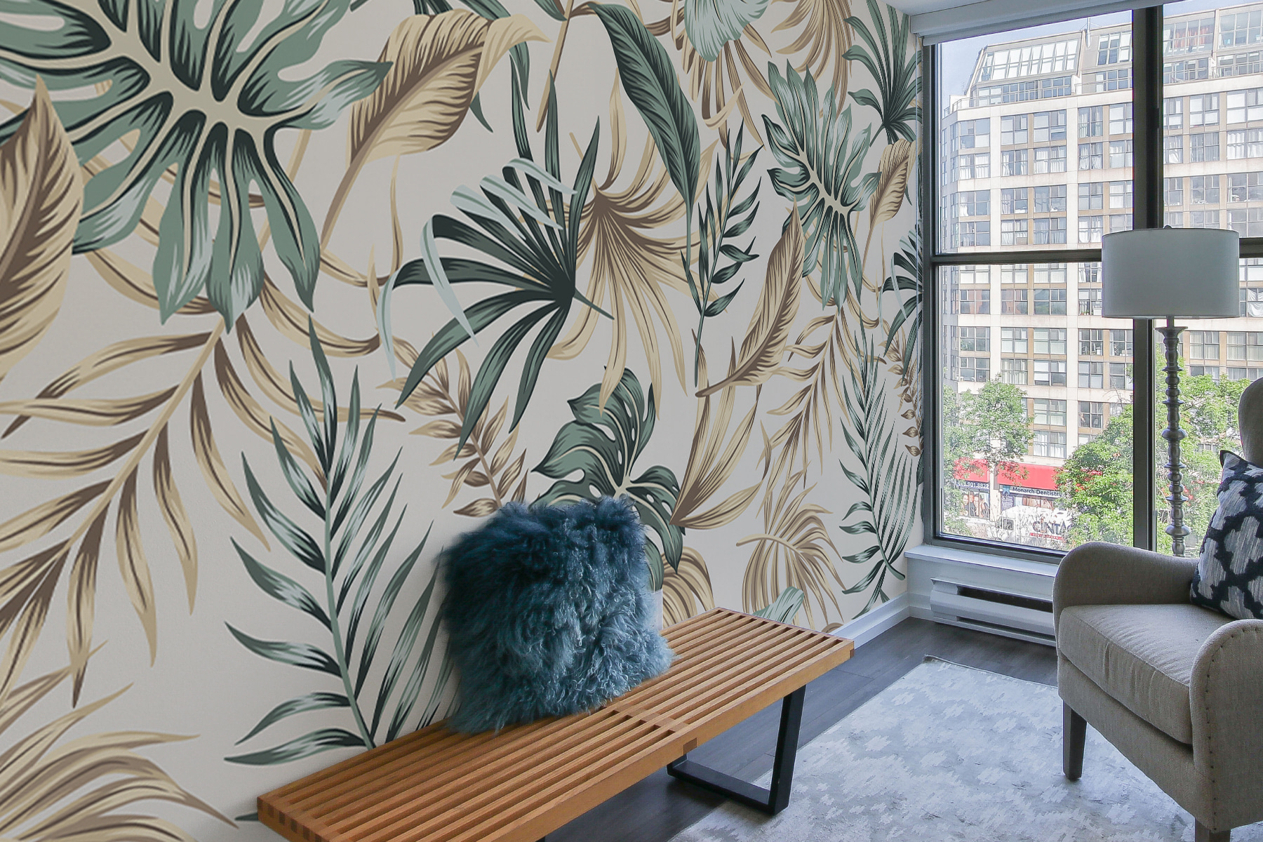 Transformați-vă spațiul cu această superbă pictură murală de perete cu frunze tropicale pe un fundal bej liniștitor. Imaginați-vă că pășiți în camera dvs. și vă simțiți ca și cum v-ați rătăcit într-un refugiu senin din junglă. Aceste verdețuri luxuriante ies în evidență pe pânza moale, creând un vibe care este atât calmant, cât și energizant. Perfectă pentru sufragerii, dormitoare sau chiar pentru un colțișor de lectură confortabil, aceasta invită la o adiere de aer proaspăt. Prietenii se vor întreba dacă ai angajat un decorator, dar, de fapt, ești doar tu și gustul tău deosebit care faceți din fiecare colț un mic paradis. Așadar, ce mai aștepți? Scufundați-vă în frunziș!