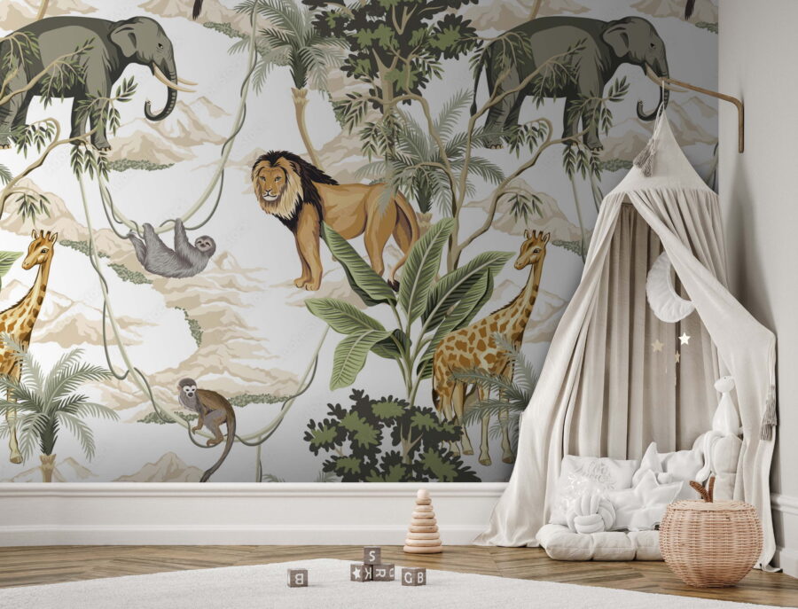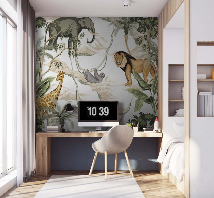 Transformați o cameră într-o aventură în junglă cu acest fototapet vibrant. Imaginați-vă că savurați o cafea în timp ce un leu privește totul cu indiferență sau un leneș vă dă cea mai lentă bătaie de palma din lume. Cu girafe care privesc înăuntru și elefanți care adaugă o notă de măreție, este greu să nu simțiți o scânteie de inspirație sălbatică! Perfect pentru colțurile confortabile sau pentru peretele care ar avea nevoie de puțină viață. Imaginați-vă poveștile pe care le va spune – oaspeții dvs. se vor simți ca niște exploratori de fiecare dată când vor păși în acest spațiu. Aduceți natura în interior, fără țânțari!